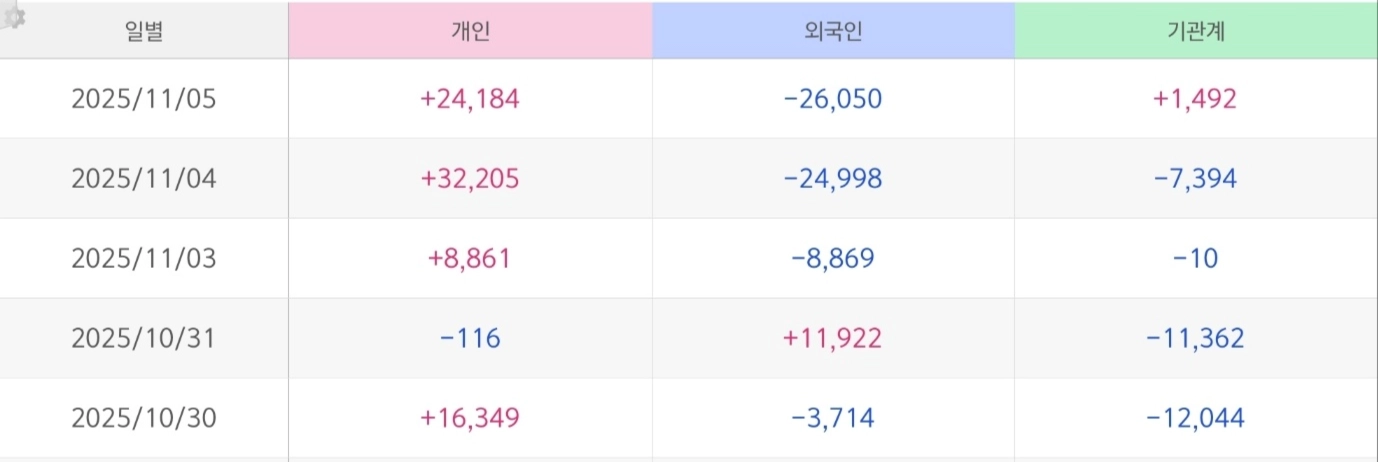 → 전일과 당일 개인 수급은 양시장 합계 무려 약 5조 5천억원 수준
