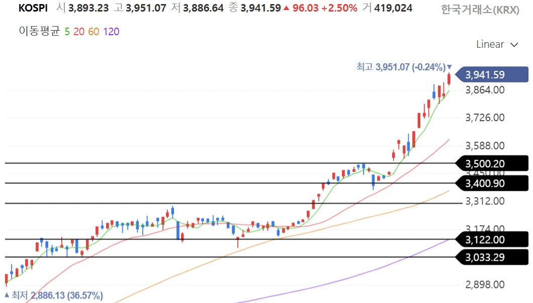 인텔 호실적 발표에, 당일 국내 반도체 섹터 상승에 훈풍이 불며 당일 증시 상승세에 기여