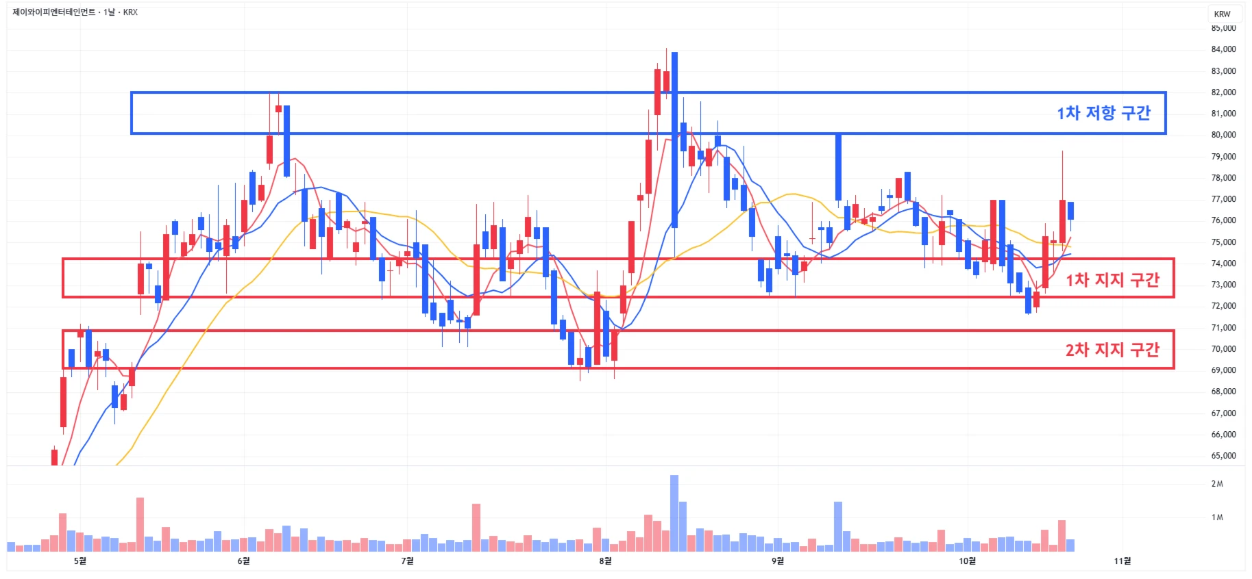 1) JYP : 당일 섹터 전반적 약세에 하락 마무리