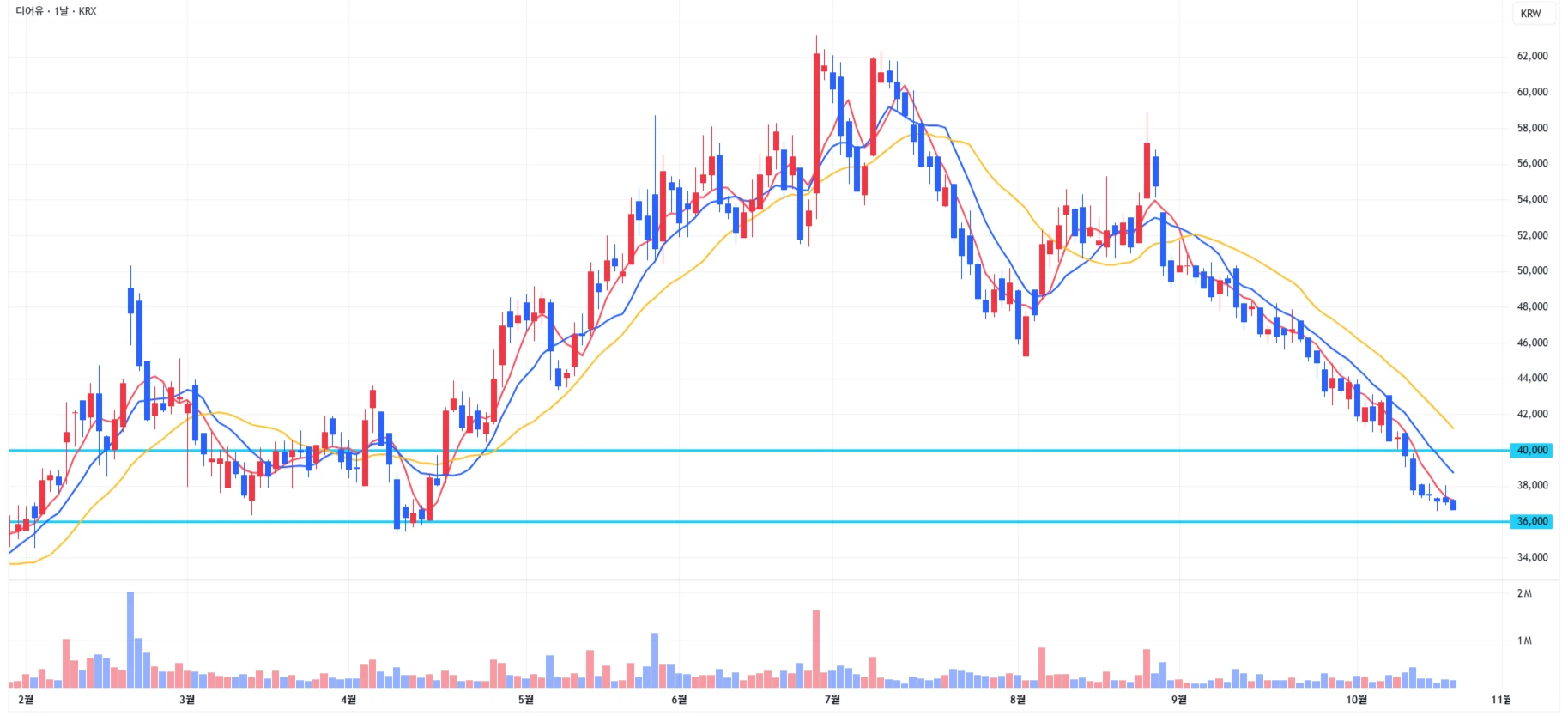 3) 디어유 : 당일에도 시장 소외에 하락세 지속