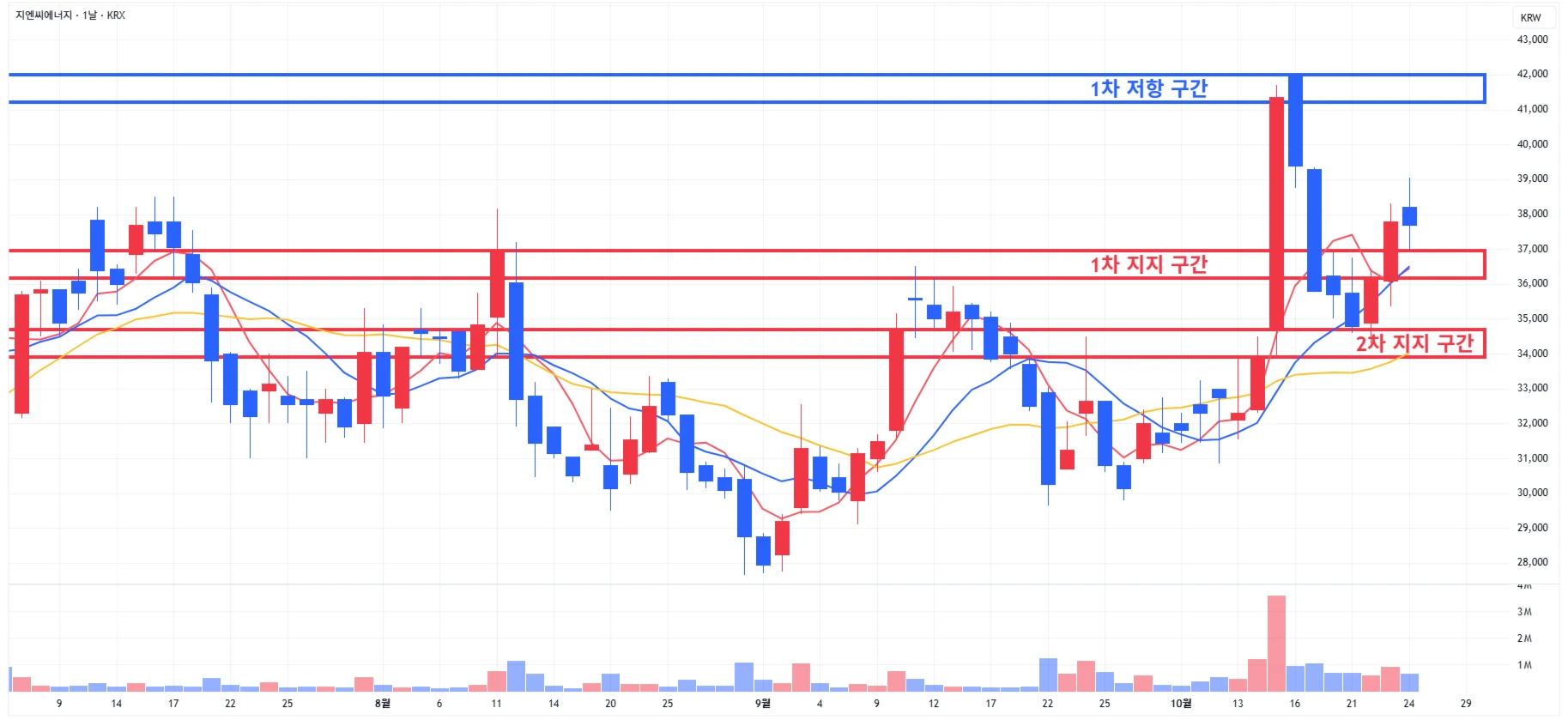 1) 지엔씨에너지 : 반등세가 지속되는 모습