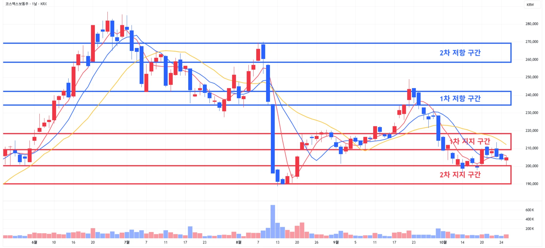 2차 지지 구간 회복 시, 분할 매수 진행