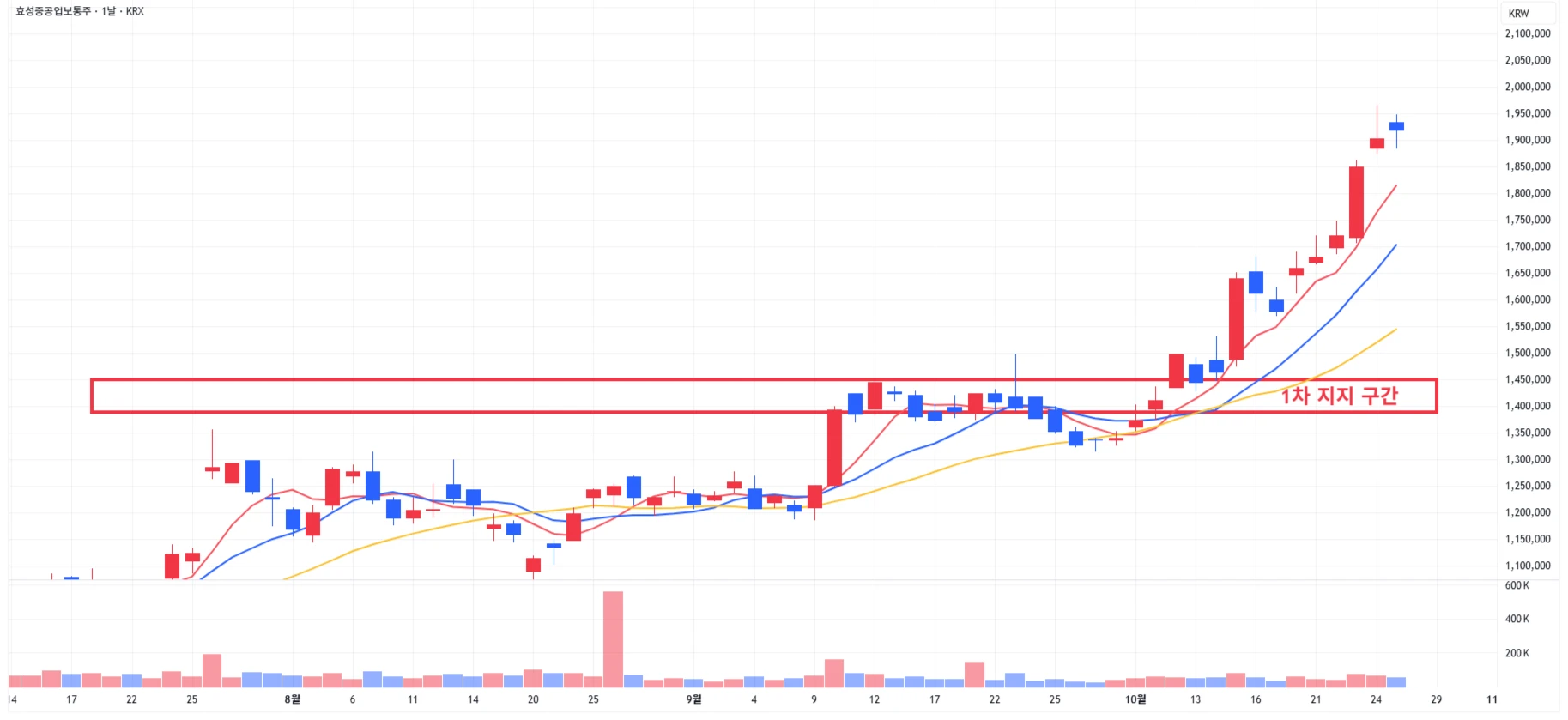 1차 지지 구간 내 분할 매수 진행