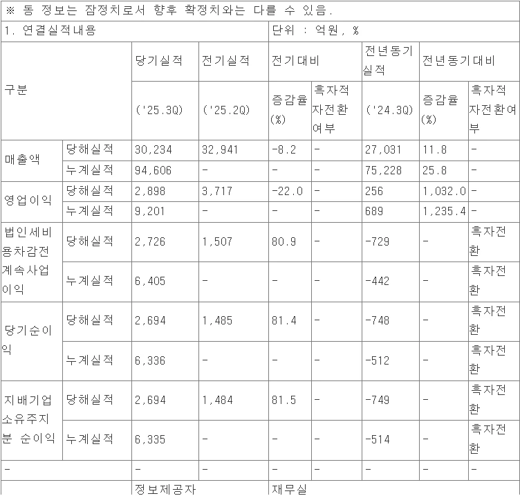 → 3분기 실적발표 예정일 11월 11일