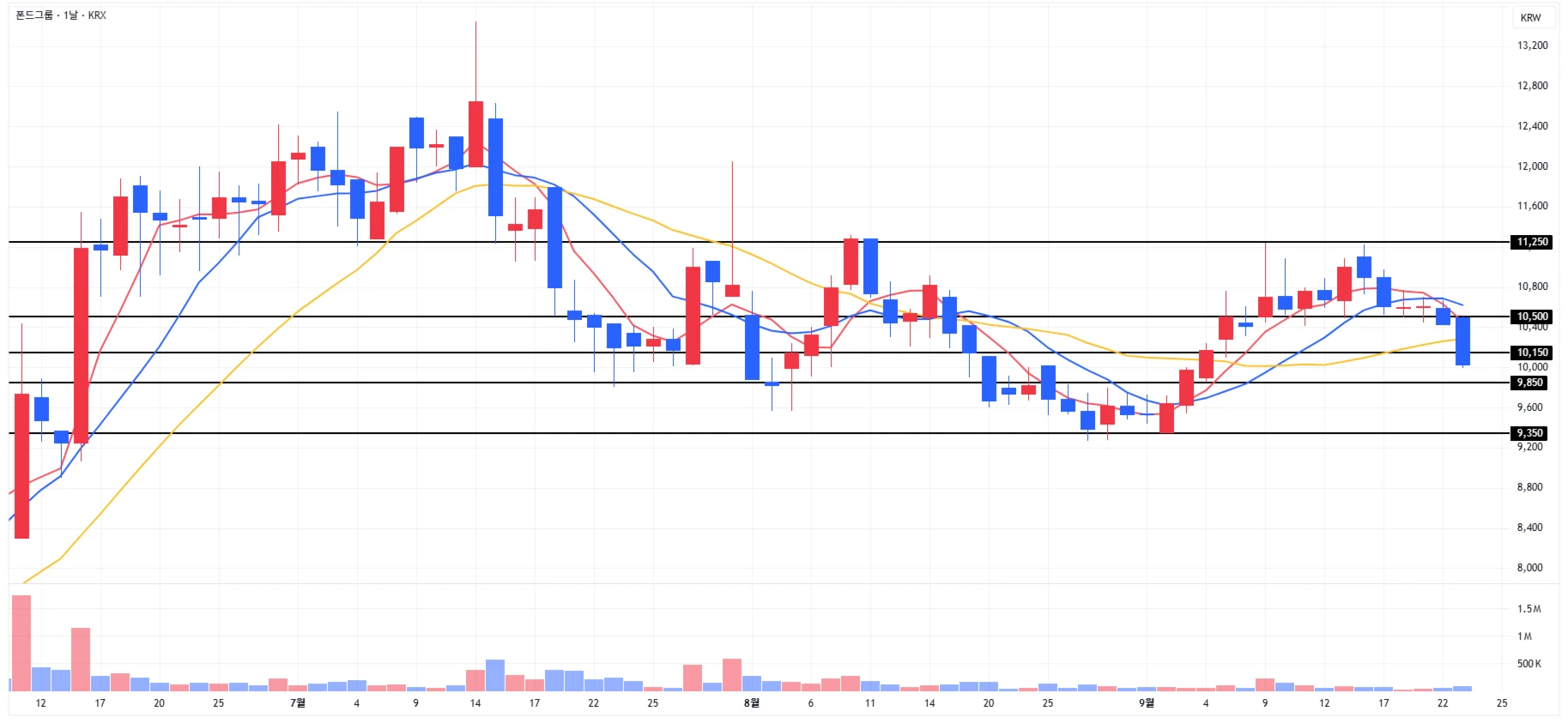 3) 폰드그룹 : 시장 소외가 이어지며 1차 지지 구간 아래로 이탈 마무리