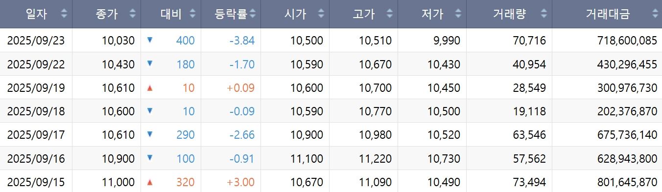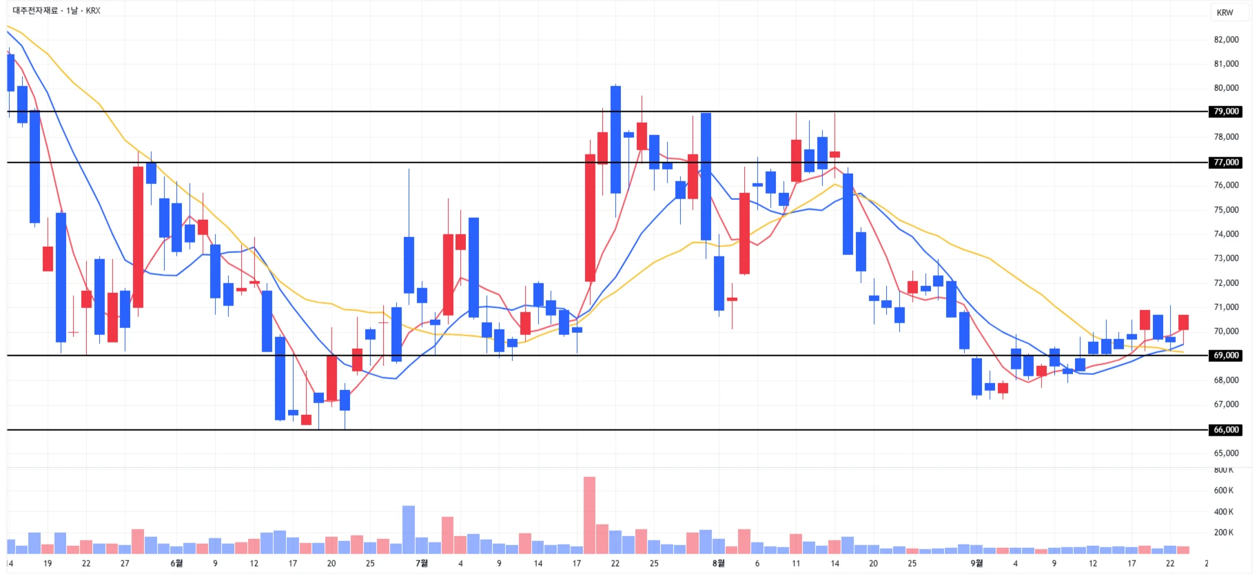 3) 대주전자재료(음극재) : 당일 소폭 상승 후 마무리