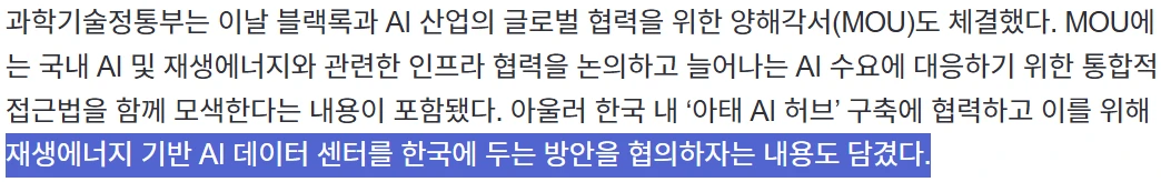 → 블랙록과의 AI 인프라 투자 관련 MOU 체결