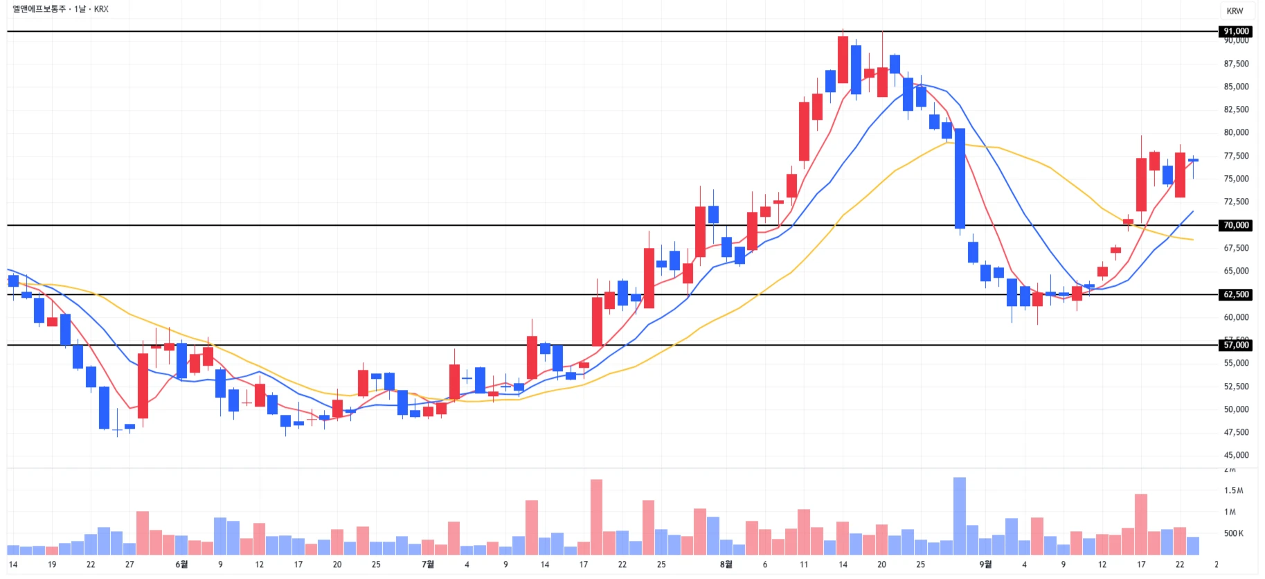 1) 엘앤에프(양극재) : 당일 큰 변동성 없이 마무리