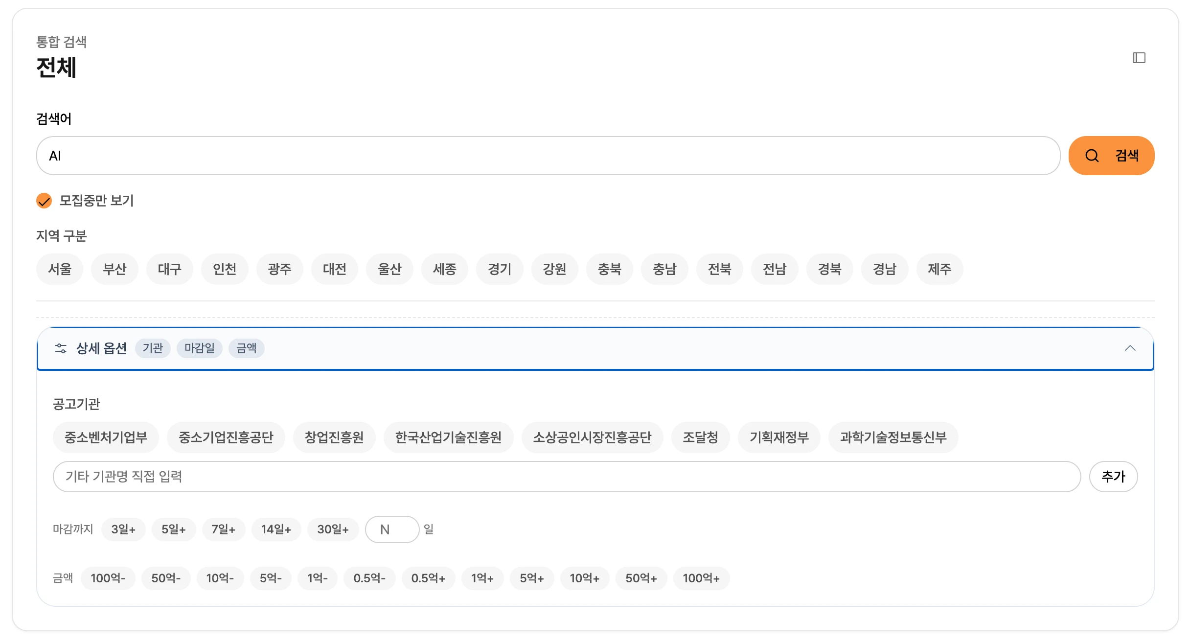 모든 공고를 한 번에 검색할 수 있는