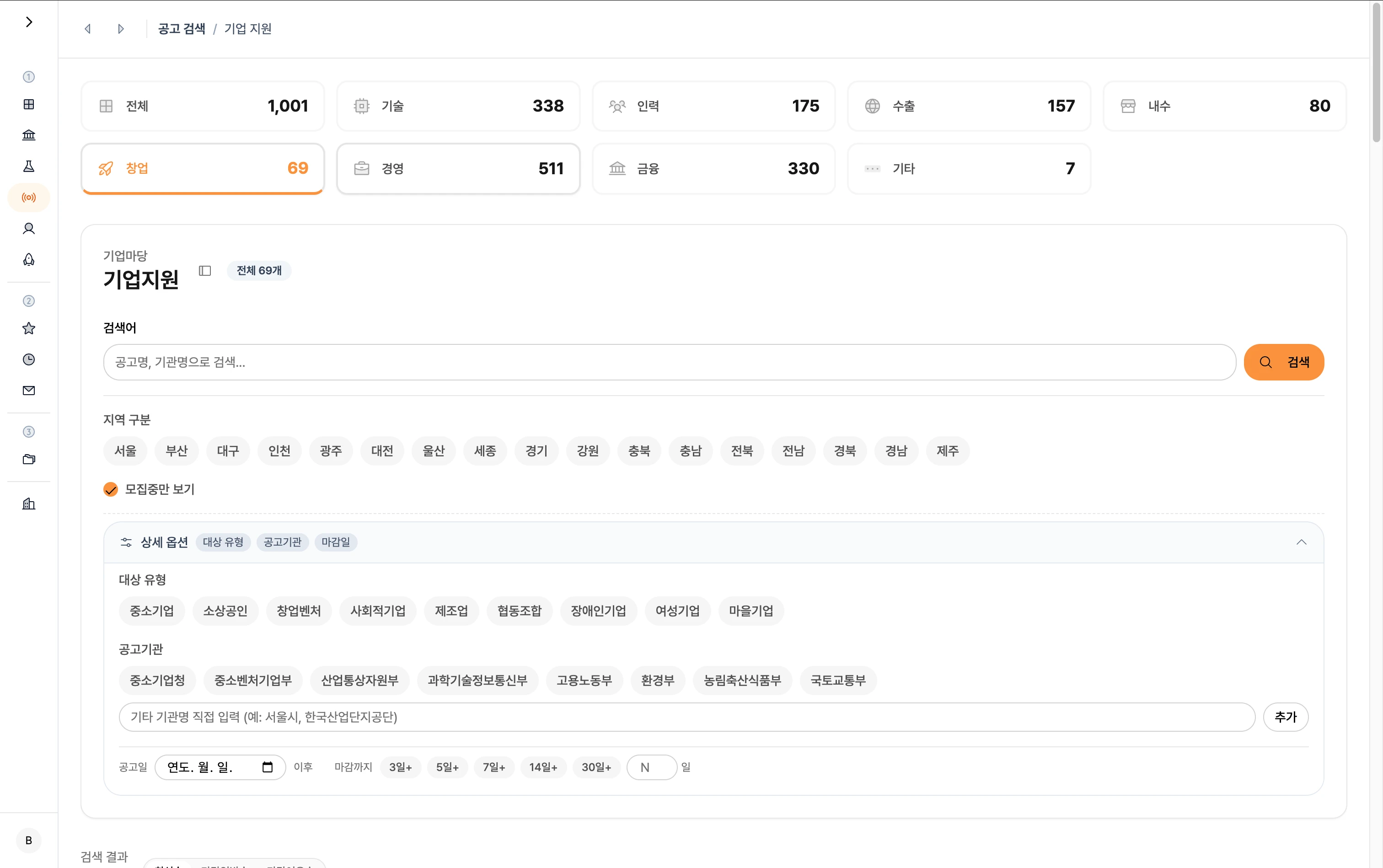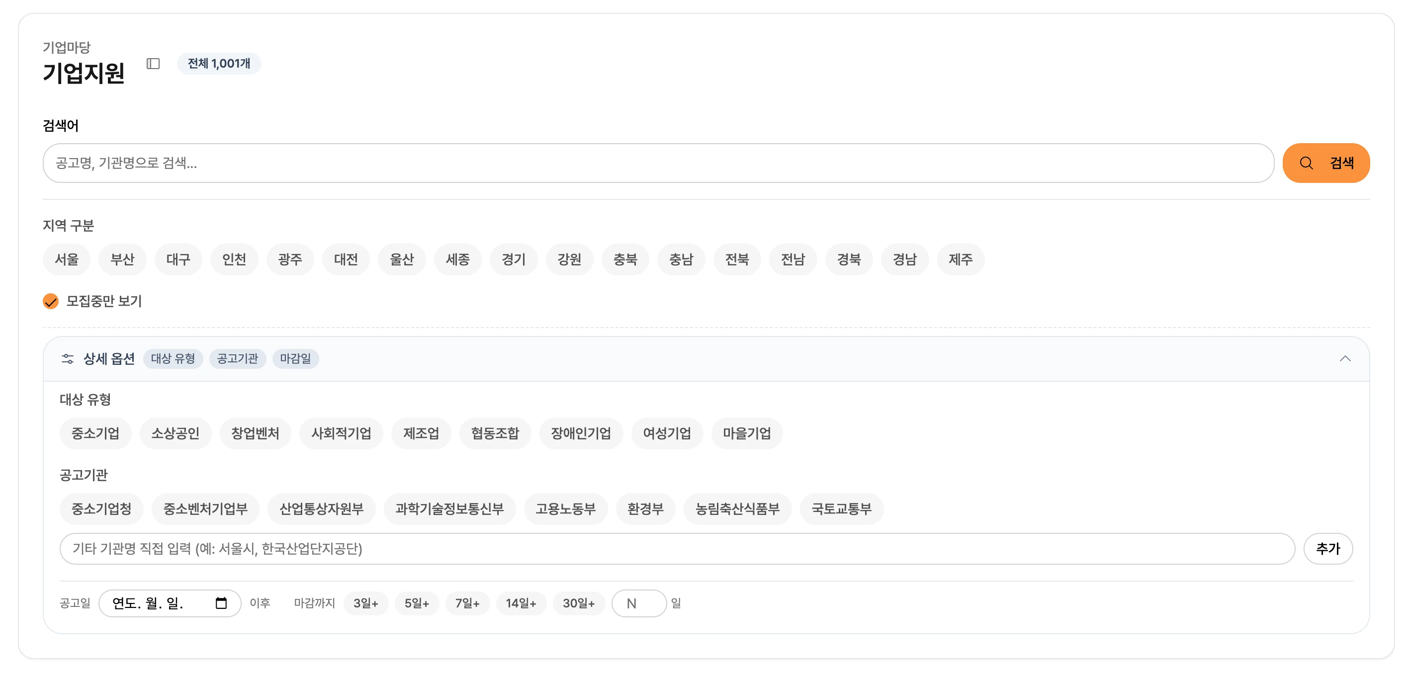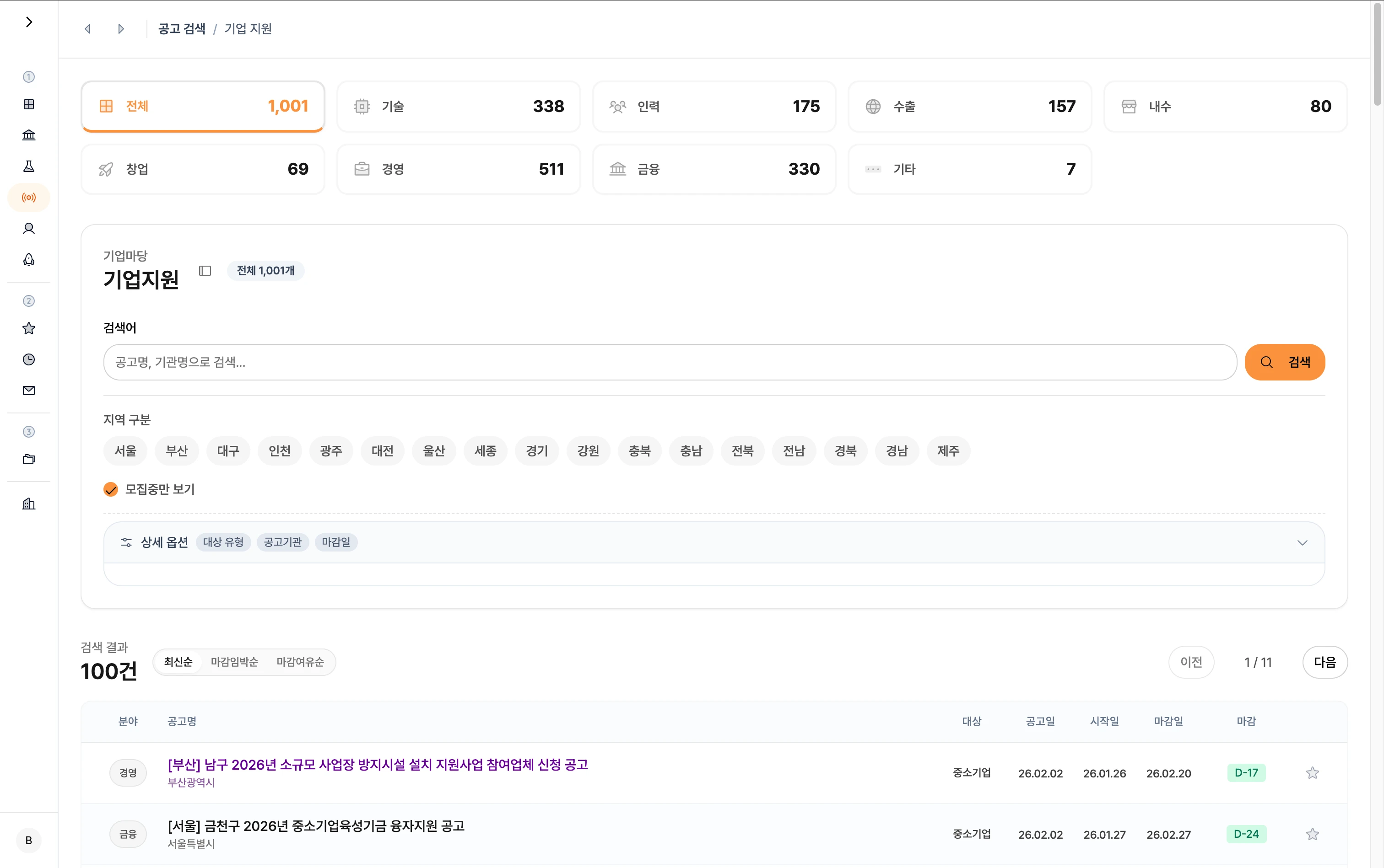 공고 검색 - 기업 지원