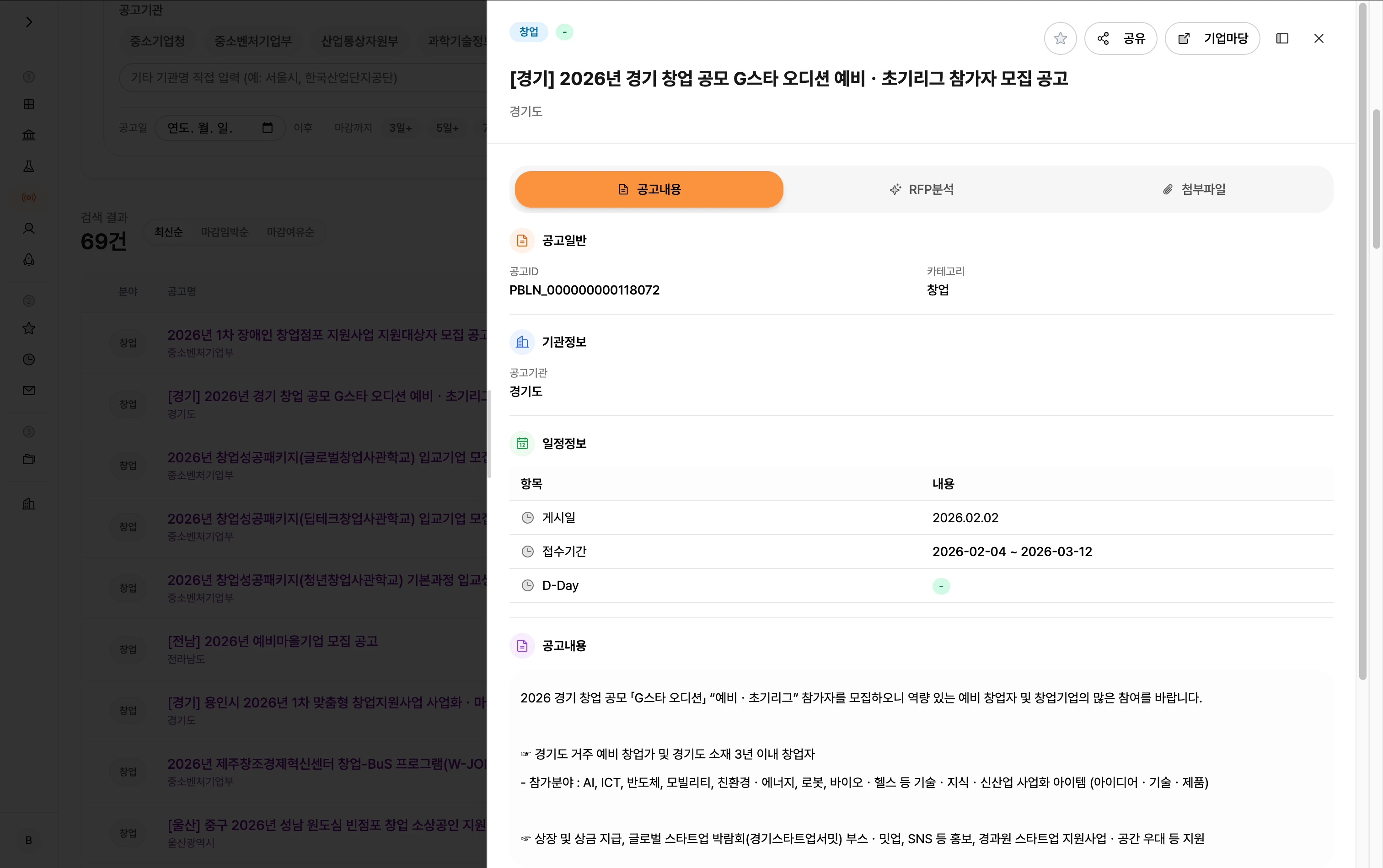 공고 검색 - R&D