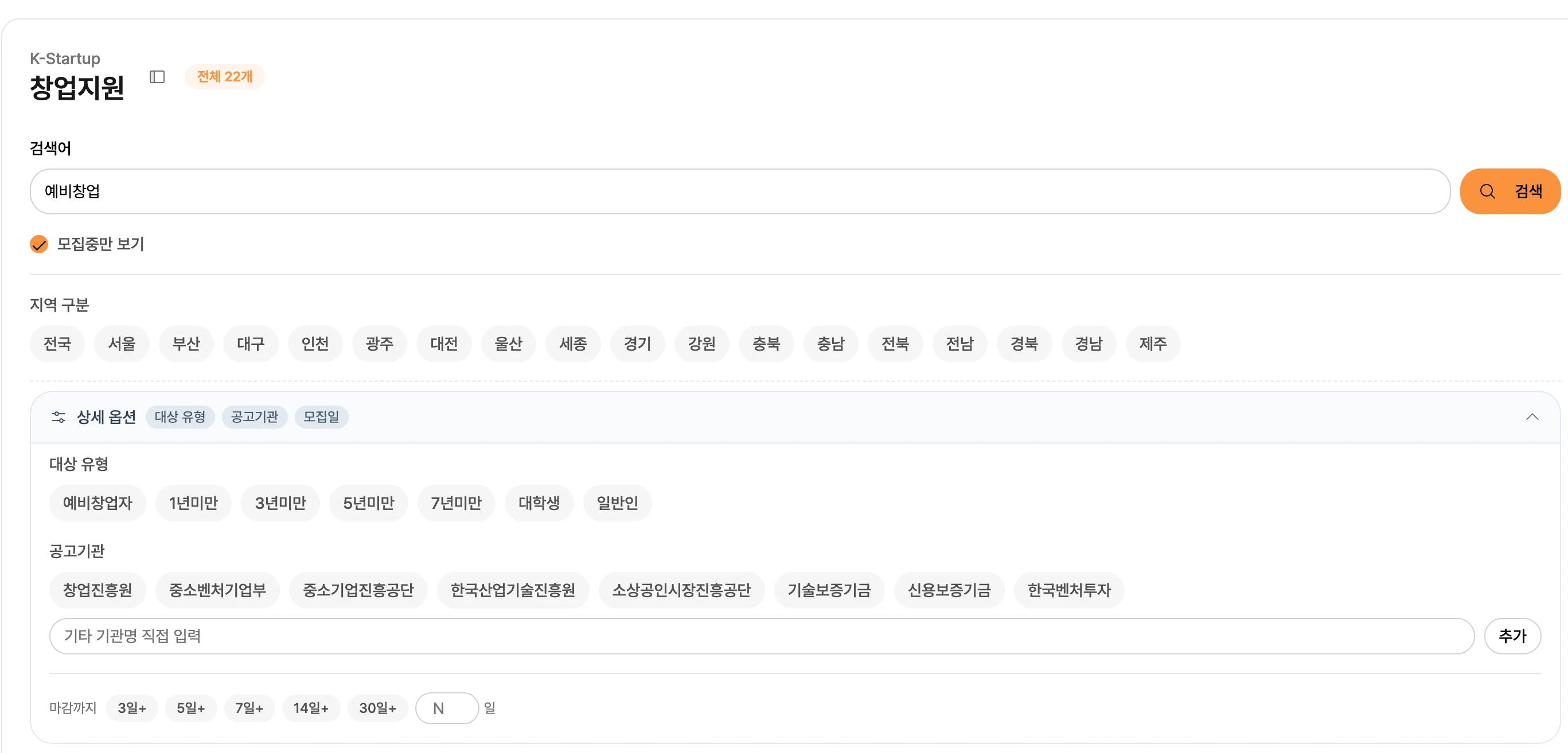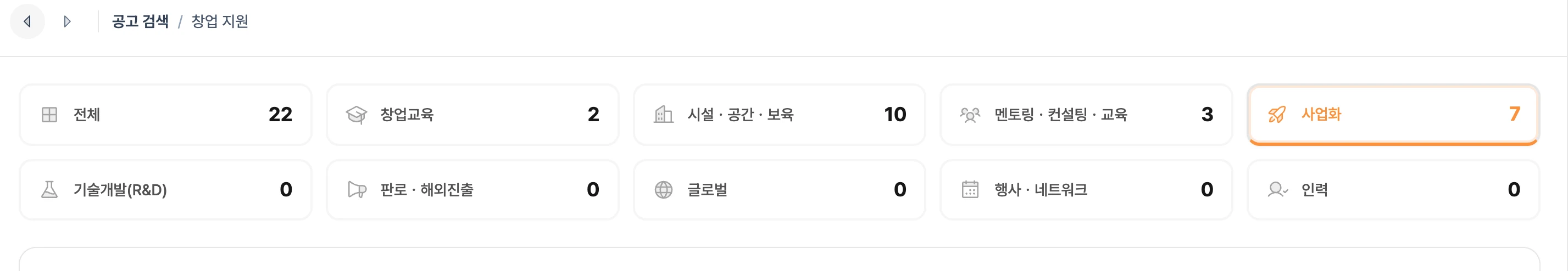 상단에는 카테고리별 관련 있는 공고들의 개수가 나와요 !