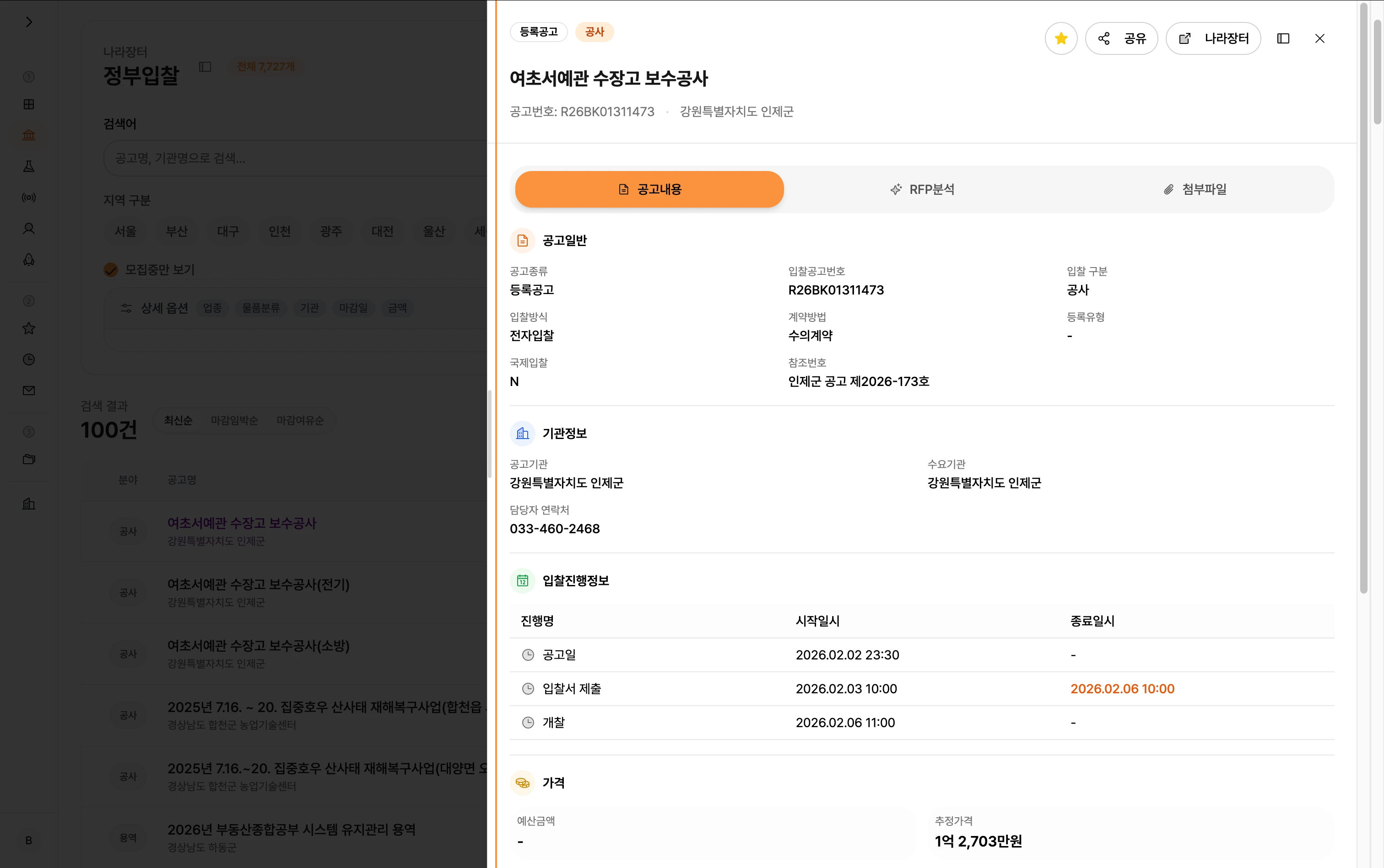 비즈벨 - 중소기업·스타트업을 위한 정부지원사업 통합 검색. 나라장터, 기업마당, K-Startup 공고를 한 번에 검색하고, RFP 요구사항 자동 분석과 맞춤 알림으로 사업 기회를 놓치지 마세요.