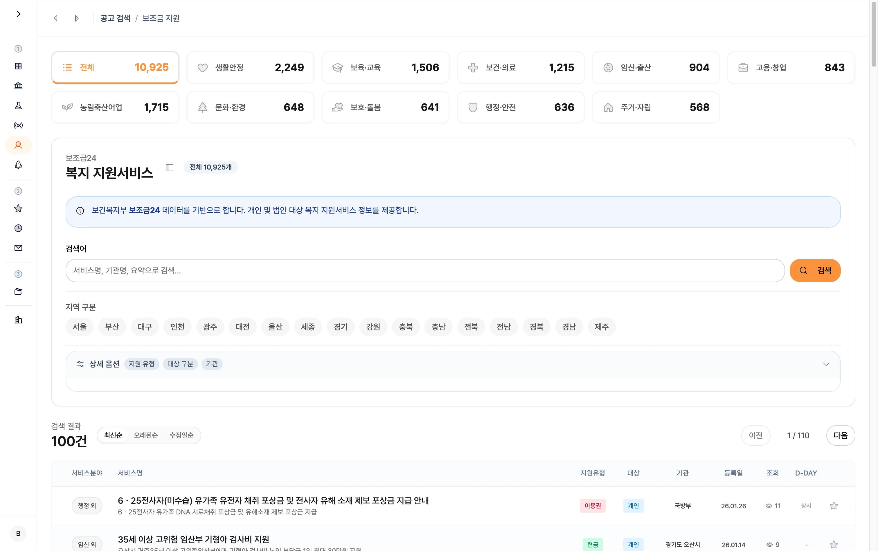 공고 검색 - 보조금 지원