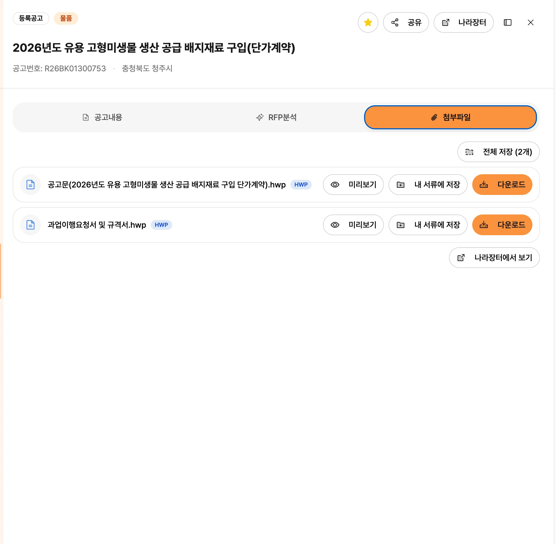 1. 관심 있는 공고의 문서를 폴더로 바로 가져오세요!