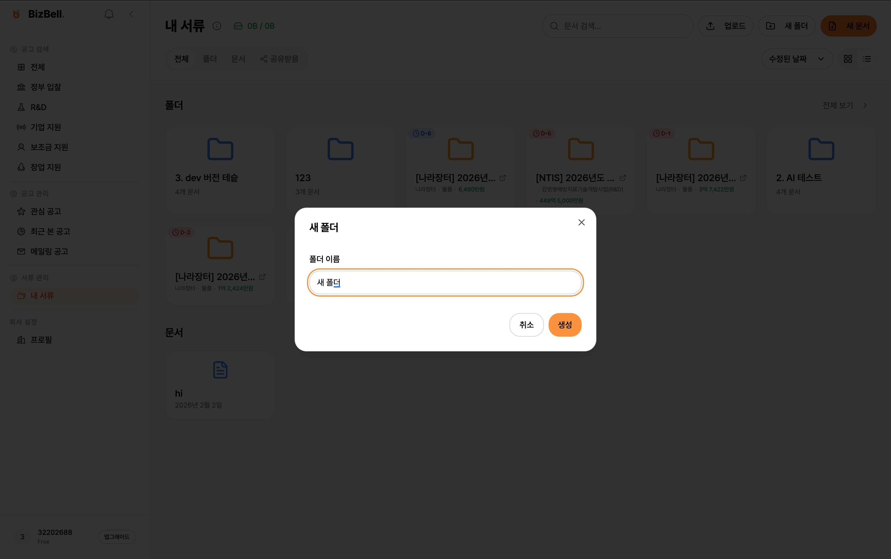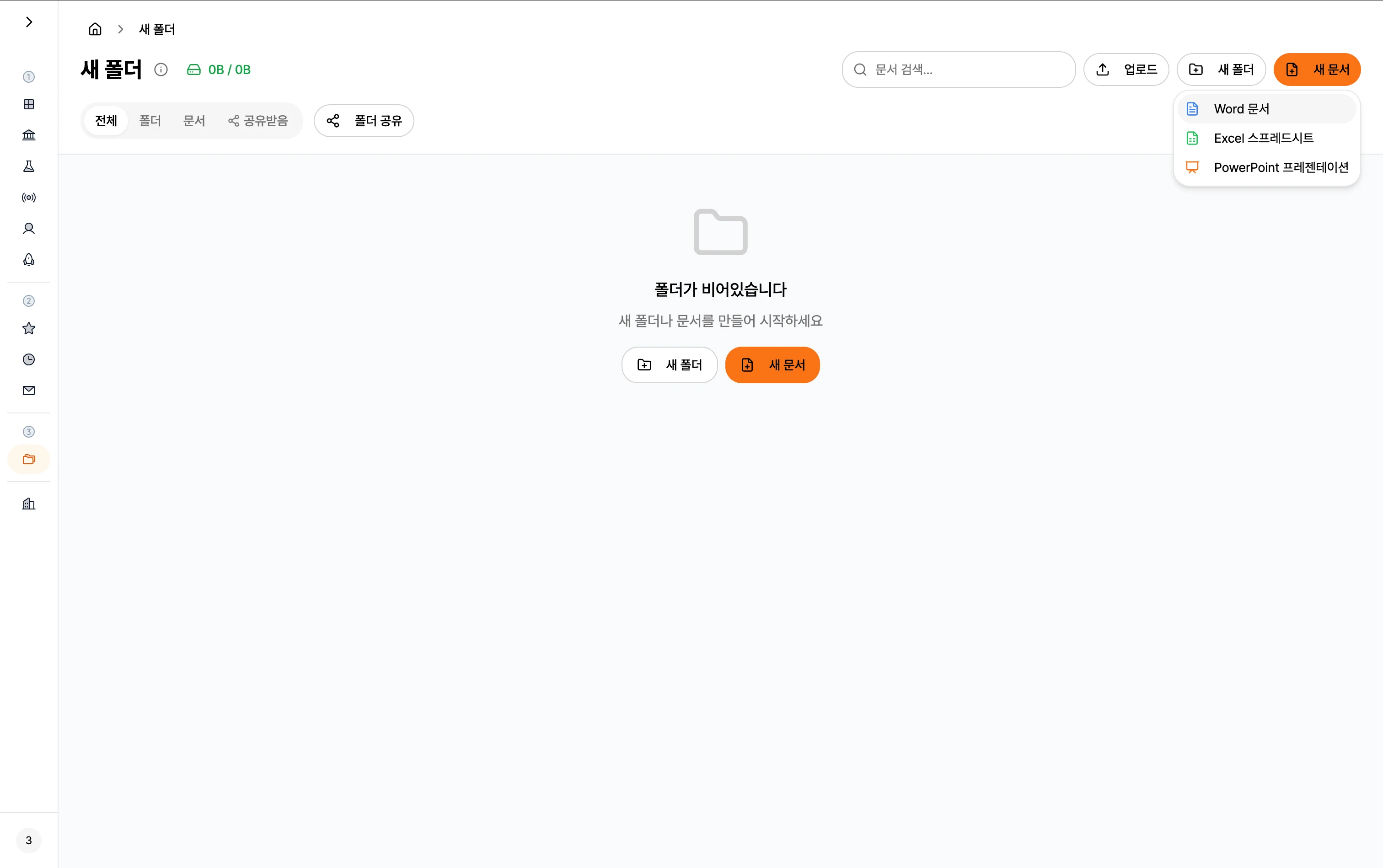 우측 상단 "새 폴더"를 이용해서 문서를 만들어주세요