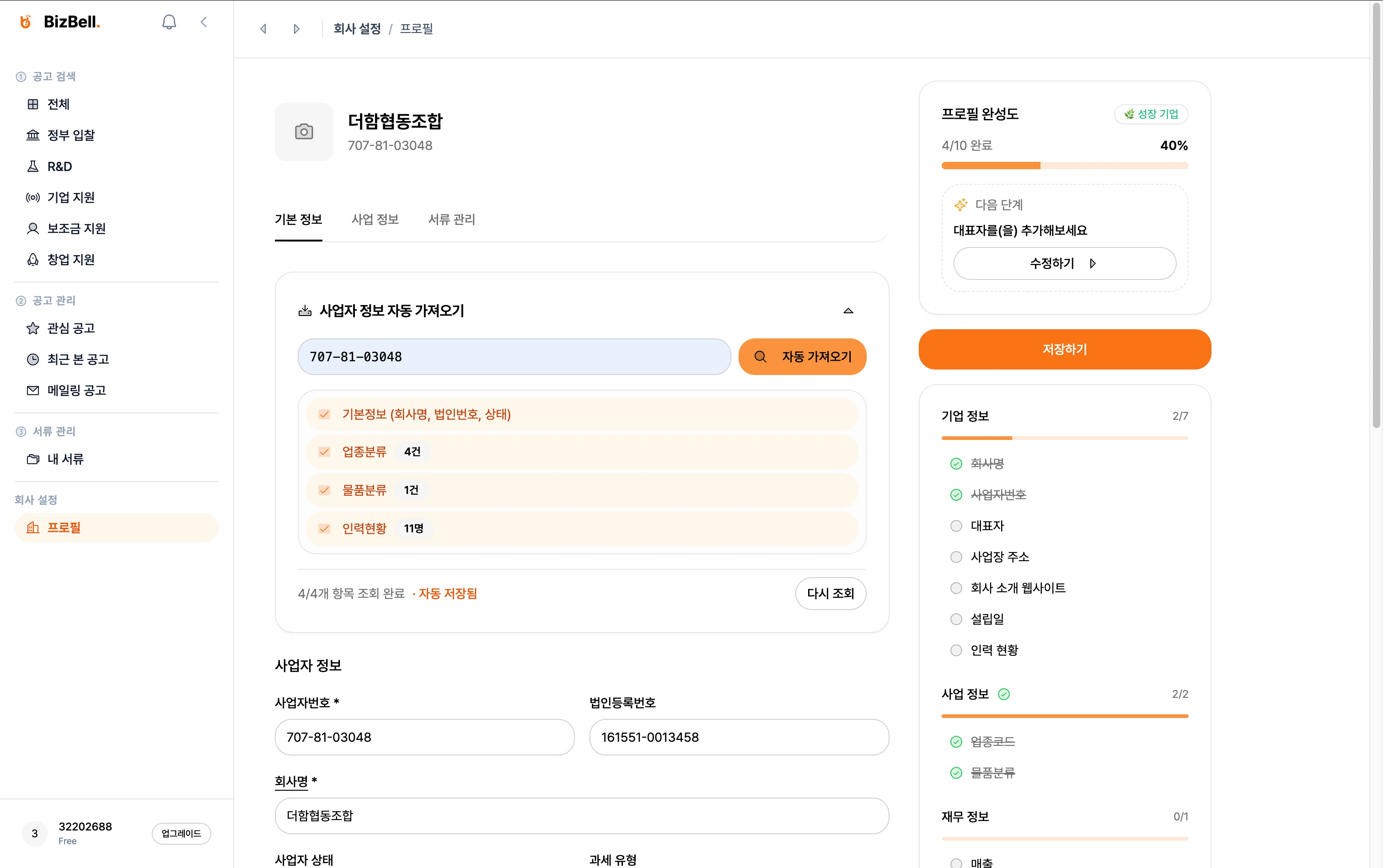 비즈벨 - 중소기업·스타트업을 위한 정부지원사업 통합 검색. 나라장터, 기업마당, K-Startup 공고를 한 번에 검색하고, RFP 요구사항 자동 분석과 맞춤 알림으로 사업 기회를 놓치지 마세요.