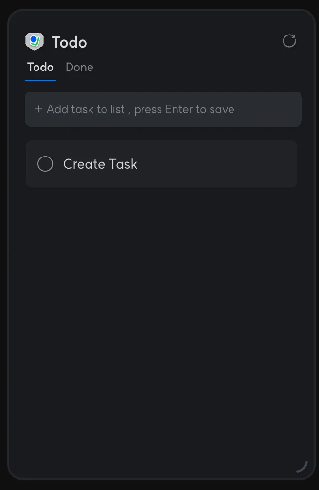 To-do 위젯 상단의 입력 박스를 통해 입력한 후 엔터를 눌러 손쉽게 할일을 생성할 수 있습니다.