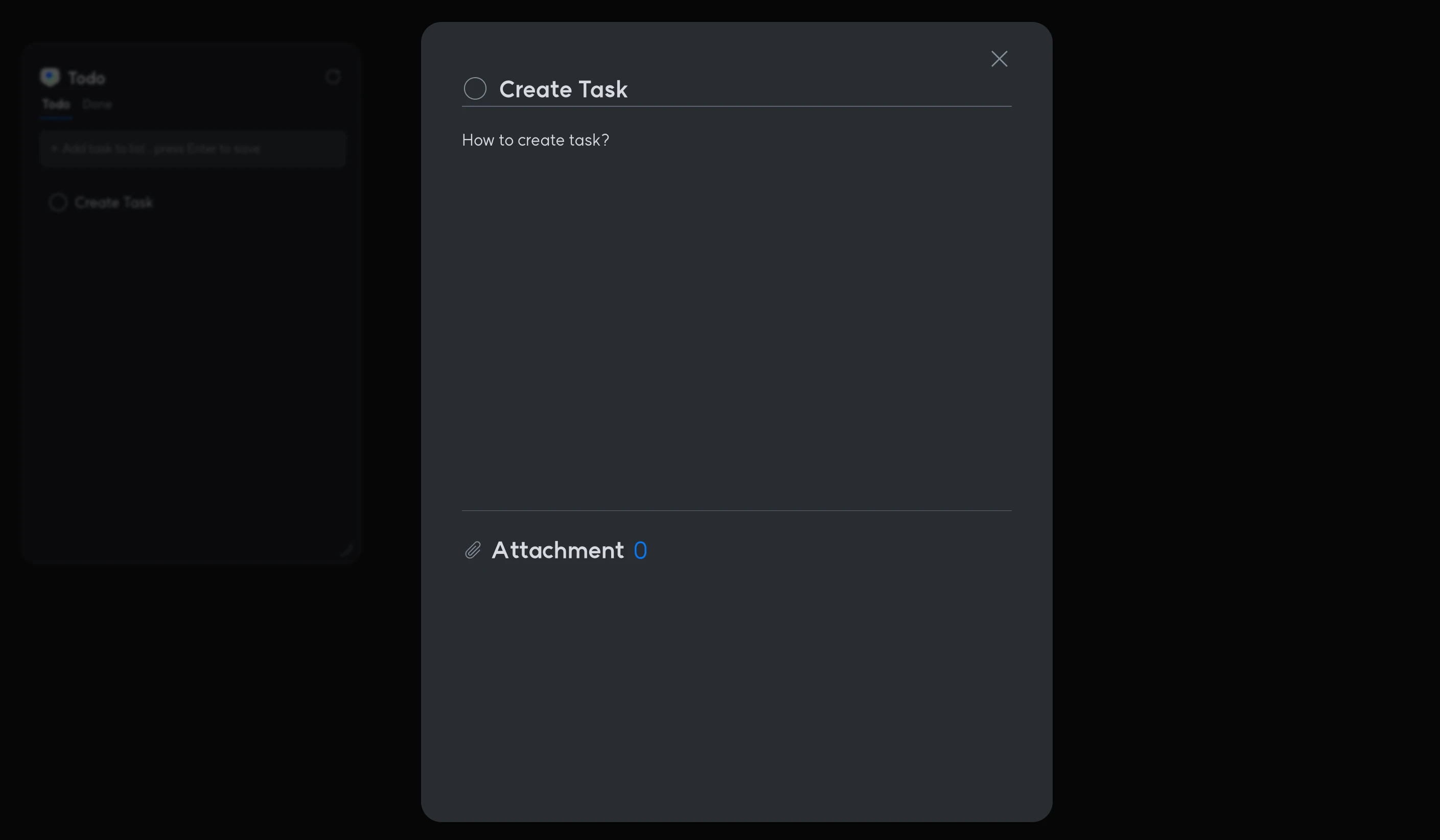 You can create your to-dos very easily and simply. Just write your to-do title and enter to save.