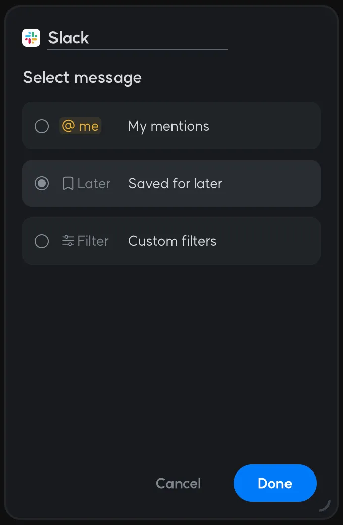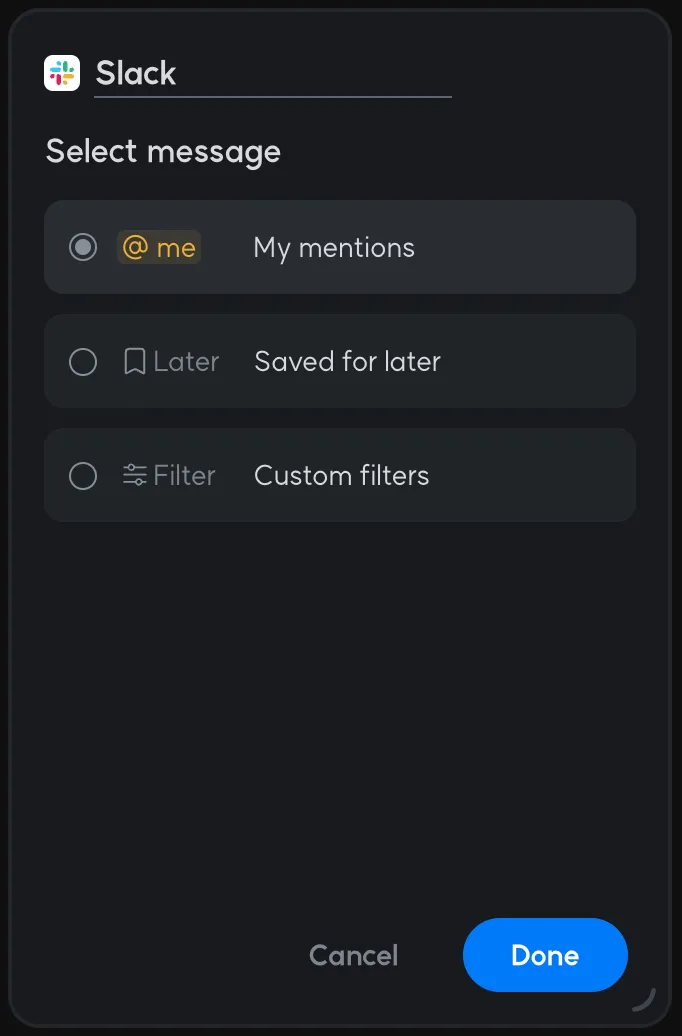 You can use this filter to collect only the messages that mention you in Slack.