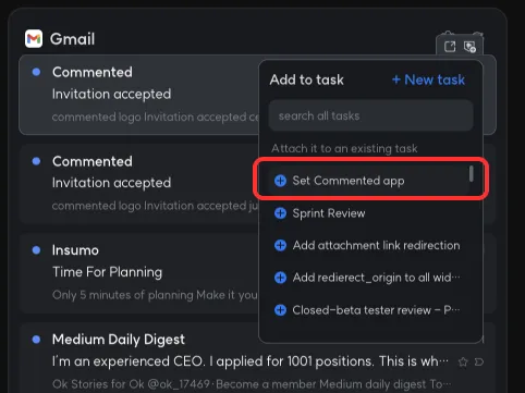 Click the add to task icon that appears when you hover your mouse on the widget card.