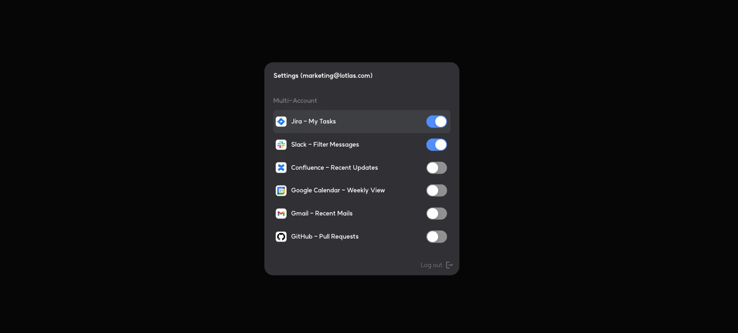 As you use various productivity tools, you may find yourself utilizing a single tool across multiple accounts. For these users, we've added the Multi-Account feature so that widgets from the same SaaS can be utilized across multiple accounts.