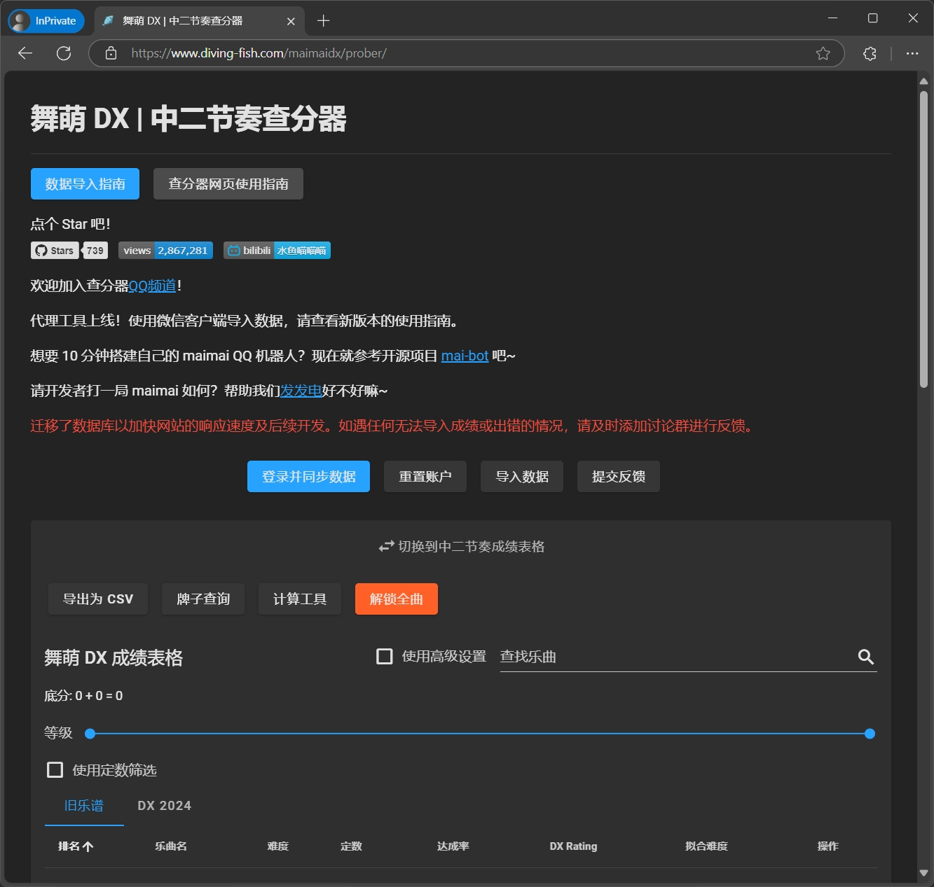 水鱼查分器(aka.舞萌 DX | 中二节奏查分器, diving-fish maimaidx prober)