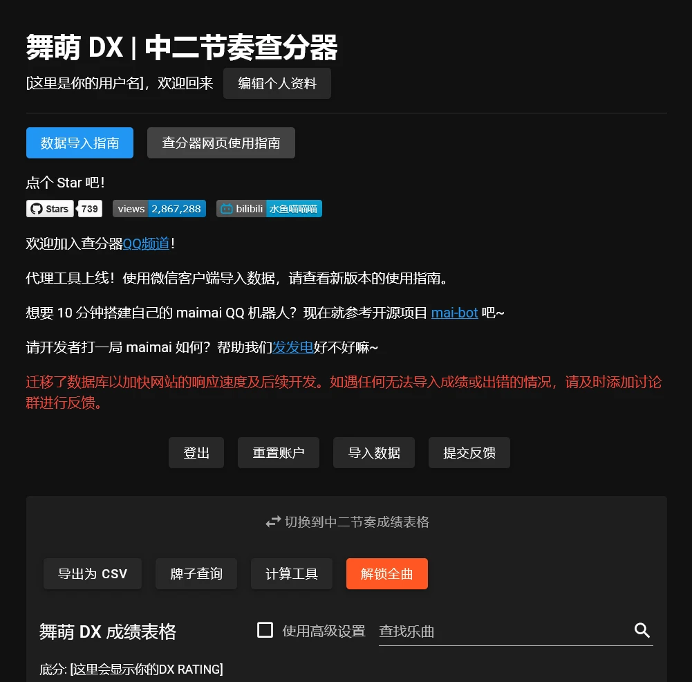 本章节为舞萌|中二的查分器使用教程,其他音游暂未涵盖!(但是后期有需求的话应该是会写的www)
