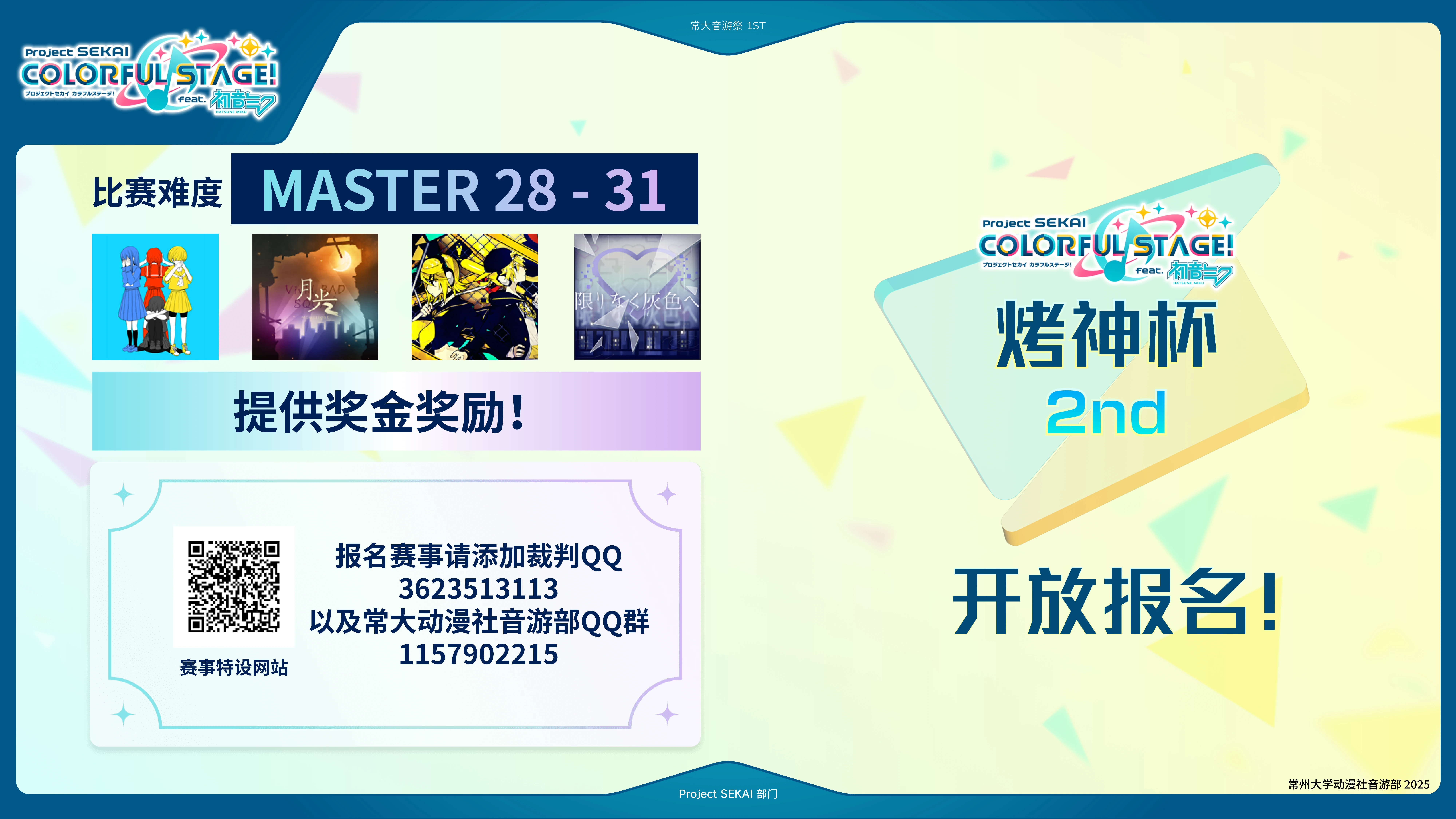一、参赛条件 1.需为常州大学学生 2.需在华立科技代理运营的《舞萌DX》上比赛 二、比赛规则 1.作弊禁止,重复报名禁止 2.本比赛全程线下,共分有三个赛区 高手赛区:Rating 0至14999 大师赛区:Rating 15000及以上 娱乐赛区:选手可自由选择是否参加 高手/大师赛区不可多选,可多选娱乐赛区 3.每个赛区共有四轮比赛,每轮比赛有三首固定曲目 前三轮曲目将被公开,且不会淘汰选手 根据选手三轮共九首歌的准度总和选出最高的四人晋级第四轮 4.每轮比赛仅开放一周,选手需在一周内完成该轮的三首歌 三首歌必须在1pc内连开,否则成绩无效 考虑到舞萌拼机的情况,建议选手互相拼机,第一首可用于热身 5.选手向裁判提交截图需包含时间特征和成绩 在公众号内查看成绩时,每首歌上方会自带时间,勿遮挡即可 选手可反复提交截图,记三首歌最高总和准度 6.娱乐赛区需要将视频素材提供给裁判,越有趣得分越高 不限人数,不限准度,不限手法,勿破坏机台和影响他人即可
