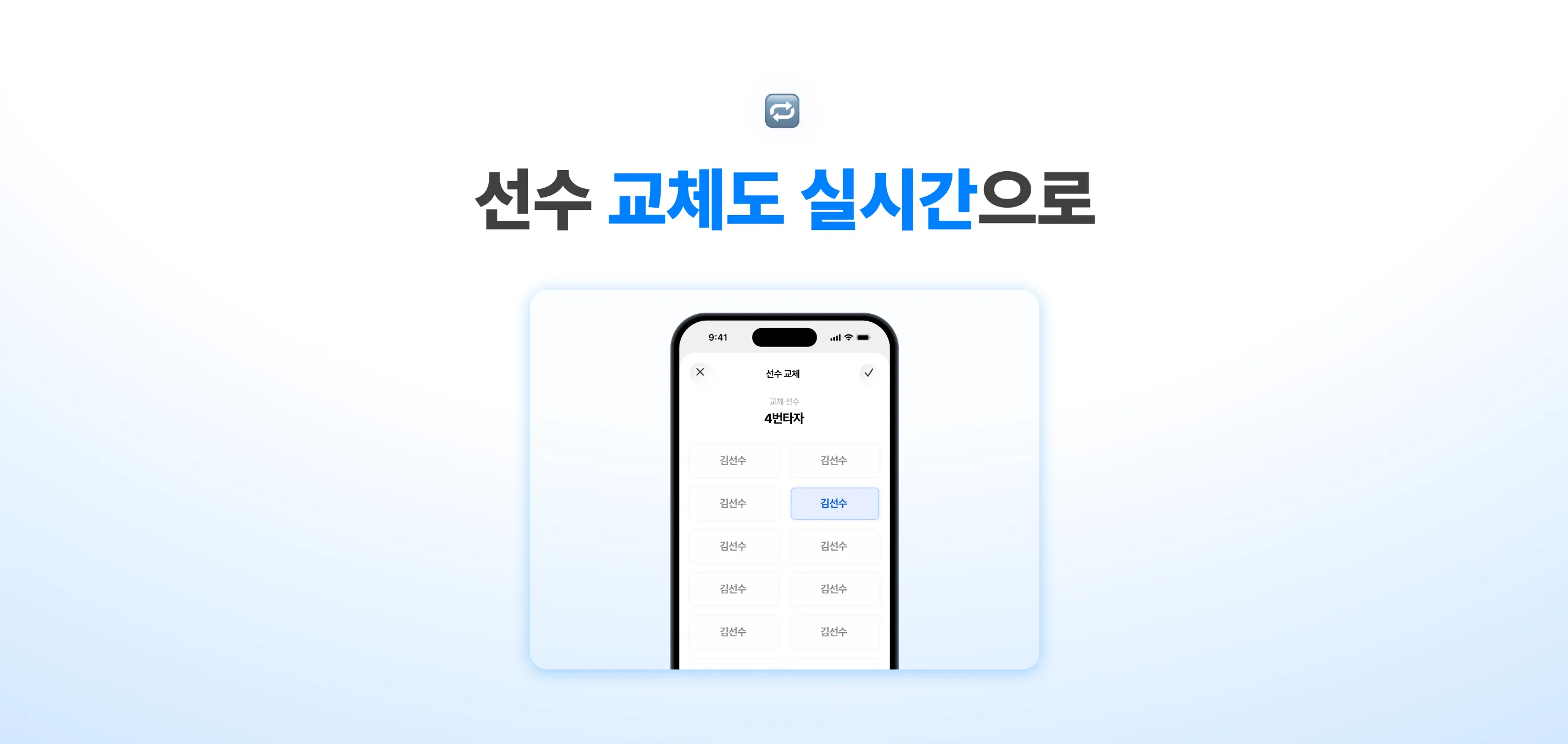 경기 현장에서 선수 교체 시, 직접 명단을 수정해 바뀐 라인업 응원가를 볼 수 있어요.