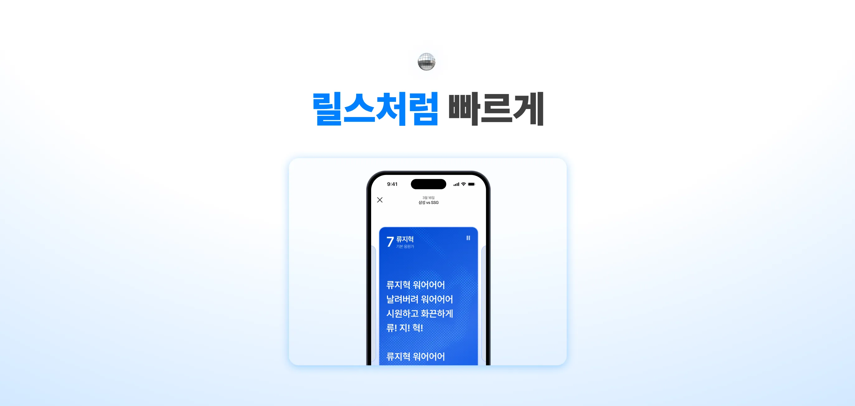 직관에서 릴스처럼 빠르게 보고 응원가를 따라 불러요