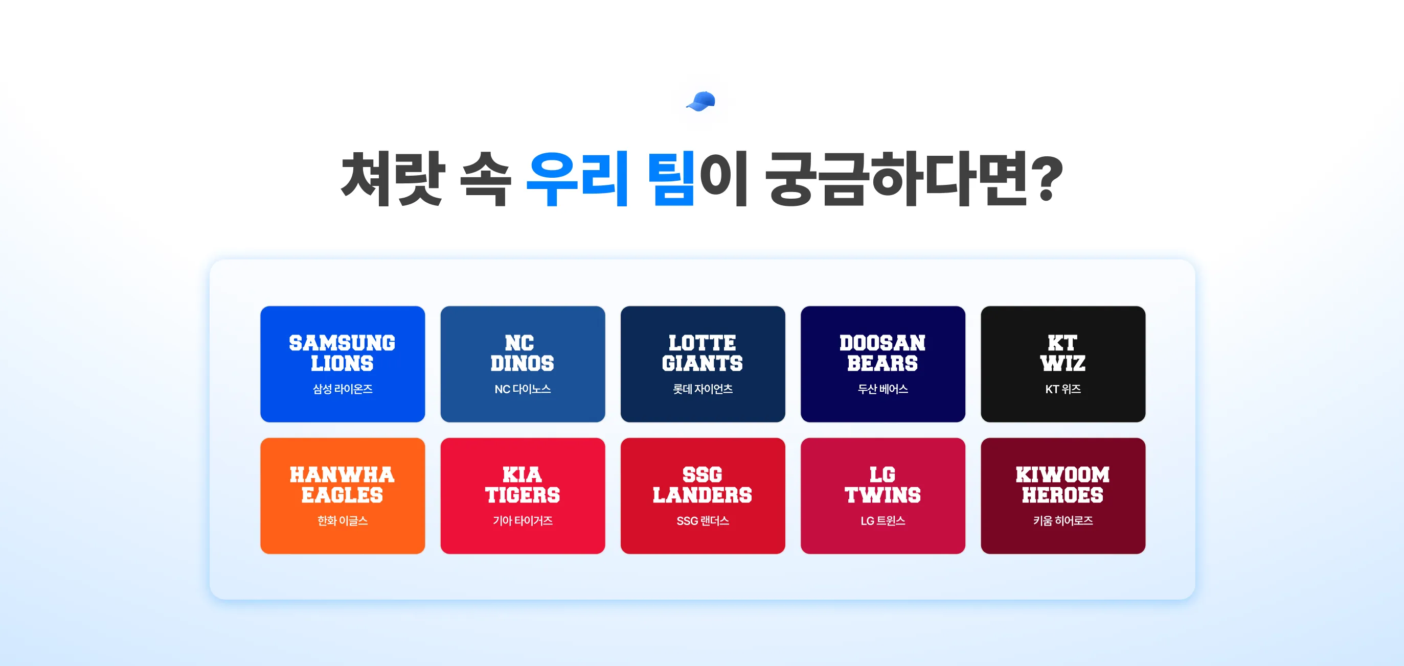 우리 팀 색에 물든 쳐랏! 지금 바로 나만의 팀을 골라보세요.