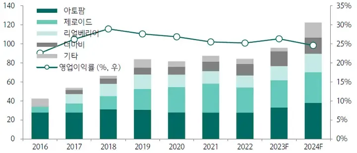 ∥ Intro 글로벌 화장품 시장의 동향과 트렌드에 관한 내용을 추가했다. 특히 CES 2024에서 로레알의 뷰티테크 관련 내용이 흥미로웠다. 그리고 필러 · 리프팅 등 메디커에 시장의 성장에 따라 네오팜 제품에 대한 수요도 증가할 수 있을 것으로 기대된다. ∥ MLE 제형 기술 네오팜은 2000년 7월에 애경산업의 사외 벤처 형태로 설립되었다. 당시 애경중앙연구소에 근무하던 박병덕 박사님의 셋 째 아이가 민감한 피부를 가지고 있었고, 수년 간의 연구 끝에 *MLE 제형 기술을 적용한 아토팜을 2000년 12월에 론칭했다. MLE 제형 기술은 현재 한국 · 미국 · 일본에 특허가 등록되어 있다. *MLE는 Multi Lamella Emulsion의 약자로 자둥층상라멜라제형이라고도 부른다. 용어에서도 유추할 수 있듯이 MLE는 건강한 피부지질에서 나타나는 라멜라 구조(Multi Lamellar)를 가장 유사하게 재현한 기술이다. 즉, 피부지질을 구성하고 있는 세라마이드 · 지방산 · 콜레스테롤과 유사한 성분으로 라멜라 구조를 만든 것이다. MLE는 피부에 자극을 적게 주고, 약화된 피부 보호막을 강화시켜 피부 속 수분을 지켜주면서 외부 자극으로부터 피부를 보호해 준다. ∥ 주요 브랜드 네오팜의 스킨케어 브랜드로는 아토팜 · 제로이드 · 리얼베리어 · 더마비 · 티엘스 · 더마트로지가 있고, 건기식 브랜드인 에이토솔루션, 반려동물 관련 브랜드인 포앤팜이 있다. 매출 비중은 아토팜 > 제로이드 > 리얼베리어 > 더마비 순이다. 티엘스 · 에이토솔루션 · 포앤팜 · 더마트로지 브랜드는 아직까지 유의미한 매출을 기록하고 있진 않다. 1. 아토팜 2000년 12월에 아토팜을 론칭했다. 아토팜은 민감한 피부를 뜻하는 ATO와 케어를 위한 손바닥을 의미하는 PALM을 합성한 브랜드 네임이다. 앞서 얘기했듯이 MLE라는 제형 기술을 적용해 피부 장벽을 강화시켜 피부를 건강하게 해주는 제품을 판매하고 있다.