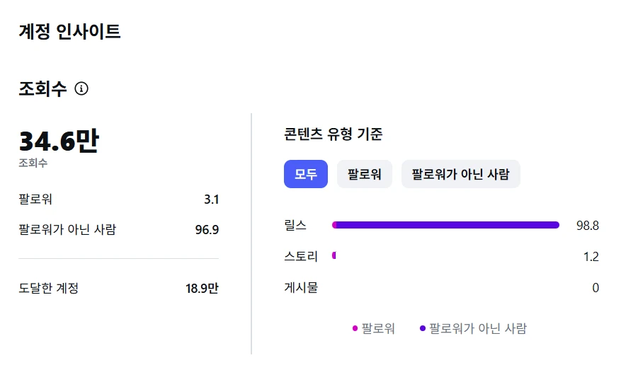 팔로워들이 모르는 애니메이션, 노래에는 크게 반응이 일어나지 않았다. 추후에 업로드 할 릴스에는 앞서 말한 점들을 보완해 나가야겠다.