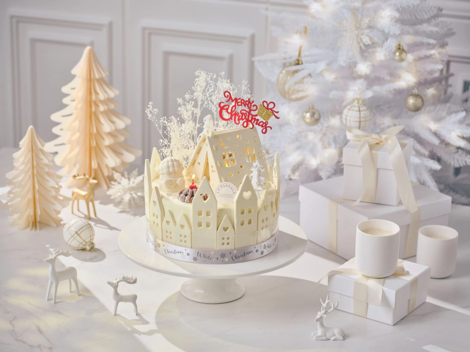 워커힐의 시그니처 딸기 샌드 케이크가 화이트 초콜릿으로 새하얗게 물들며, ‘뤼미에르 블랑슈(Lumière Blanche)’로 다시 태어났습니다. 이름처럼 ‘하얀 겨울의 빛’을 품은 이번 케이크는 눈 내린 마을과 따스한 하우스를 모티프로 제작되어, 보는 순간 마음까지 포근해집니다. 텐트 안의 작은 양초에 직접 불을 붙여 은은하게 빛나는 겨울의 밤을 완성하는 특별한 연출은 오직 워커힐에서만 만날 수 있는 ‘체험형 케이크’로, 사랑하는 사람에게 감동을 선물하기에 충분합니다. 작지만 따뜻한 온기를 전하는 워커힐의 크리스마스 케이크를 만나보세요.