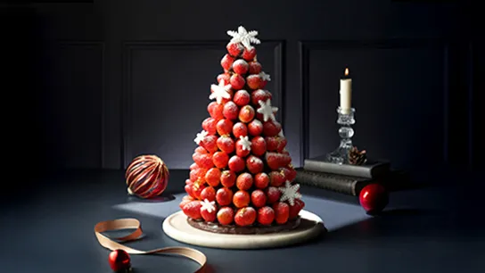신선한 딸기를 트리처럼 쌓아 올린 상큼하고 화사한 가든카페 크리스마스 대표 케이크