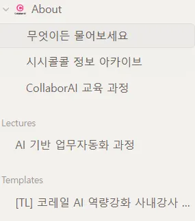 지금 접속중인 콜라보 AI 웹페이지에 강의자료가 있는데