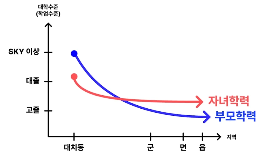 그래프 , 지역과 부모 학력, 자녀학력