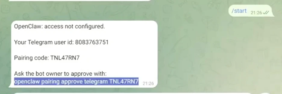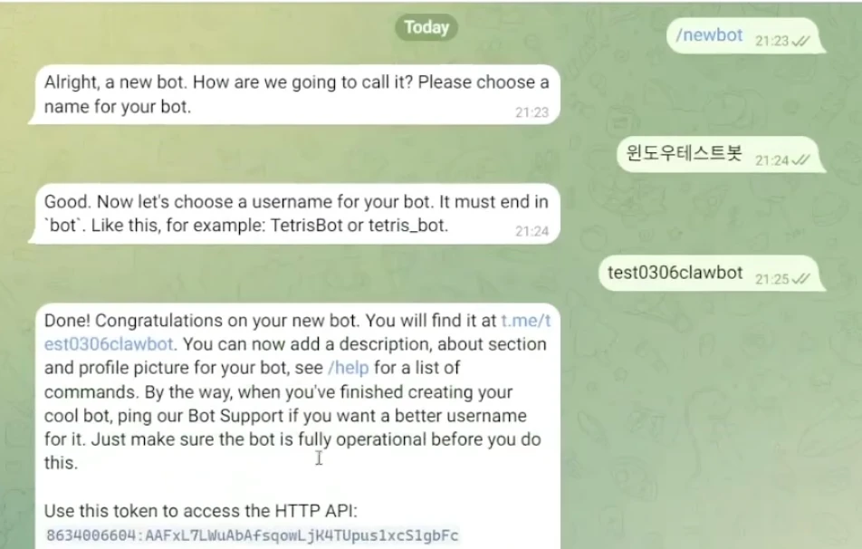 텔레그램봇과 오픈클로 페어링하기