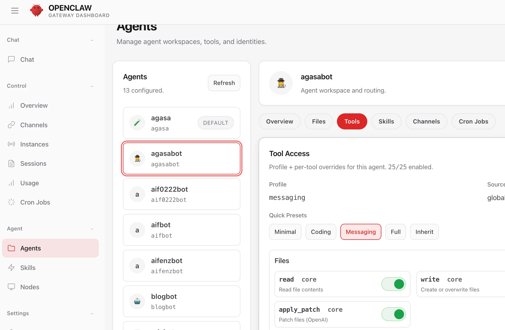 tools에서 권한 부여하고 저장하기 (게이트웨이 재시작됨)