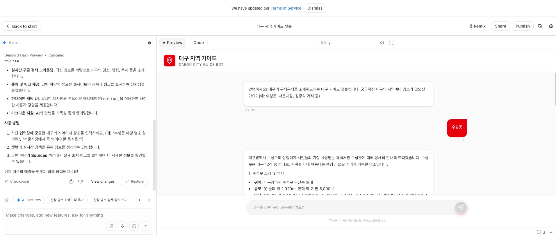 대구 여러지역을 소개하는 챗봇을 만들어줘. 그라운딩 기능을 사용해서 출처를 밝히고 링크도 함께 제공해줘
