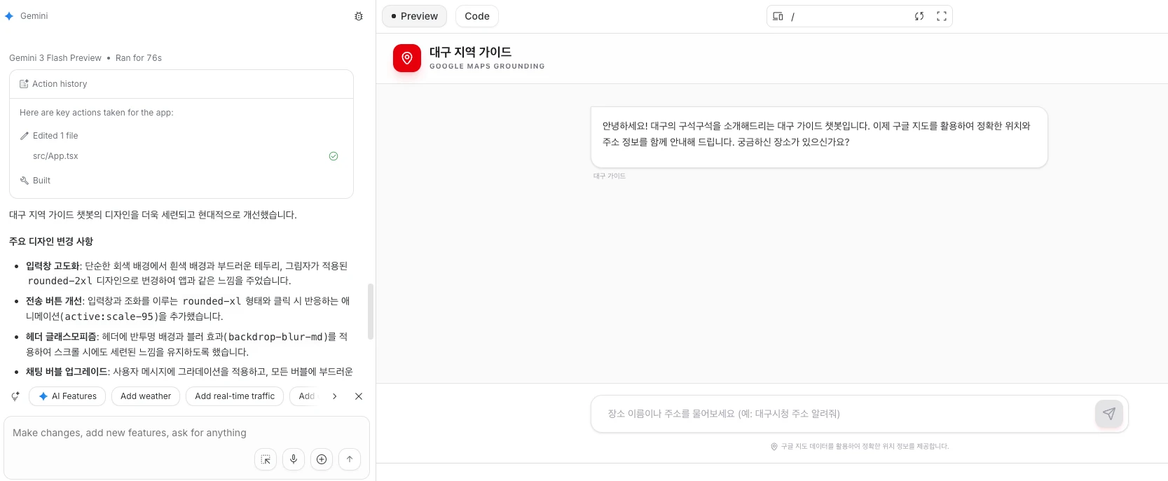 그럼 이제 구글 지도 기반 그라운딩 기능도 추가해서 지역의 주소를 조회하는 기능도 함께 추가해줘