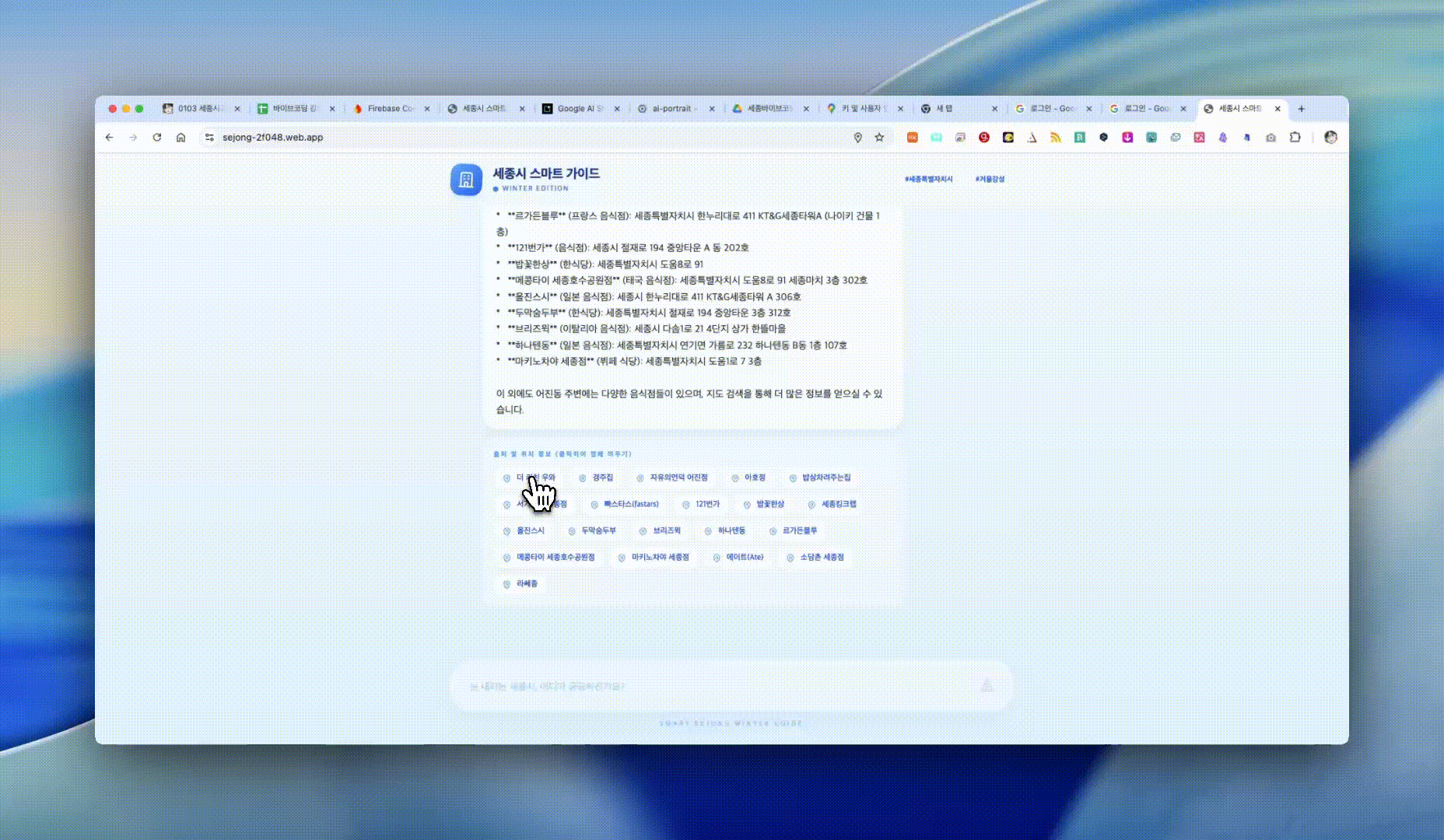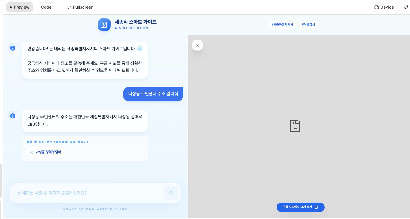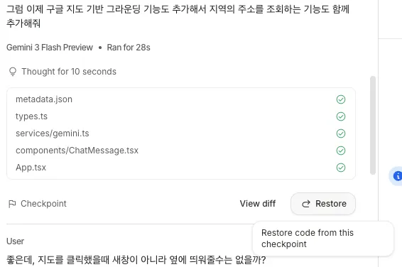 그럼 이제 구글 지도 기반 그라운딩 기능도 추가해서 지역의 주소를 조회하는 기능도 함께 추가해줘