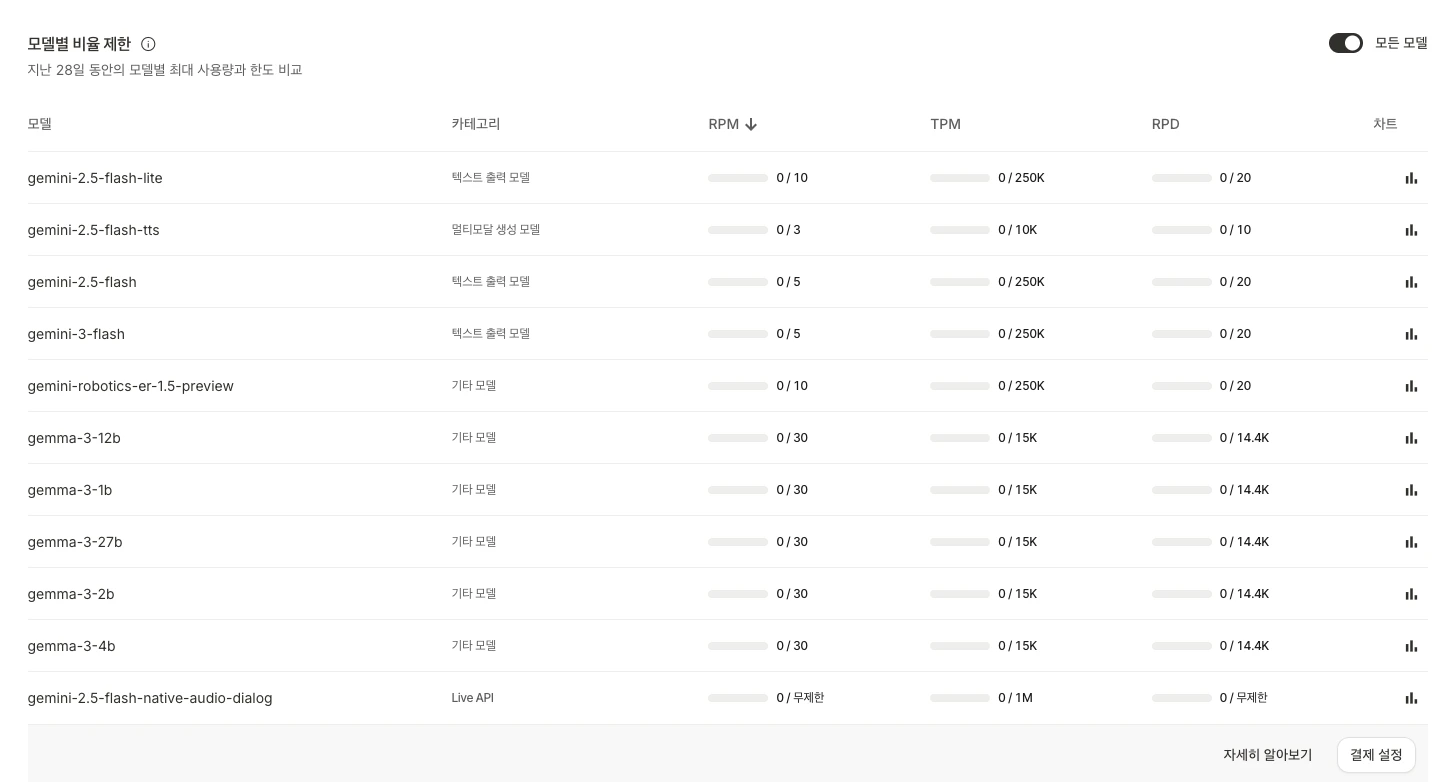 rate limit: 무료 티어의 경우 분당 / 일일 호출 횟수 제한이 있어서 문제가 될 수 있음