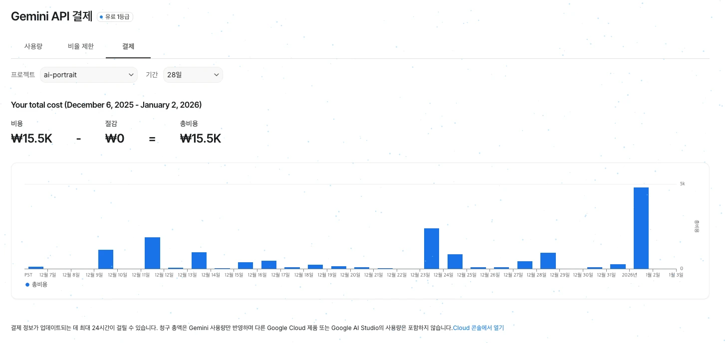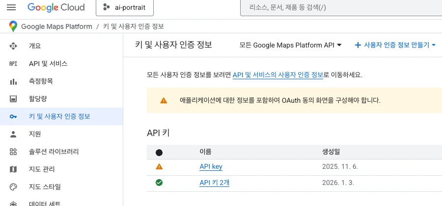 생성된 API 키(예: AIzaSy...)를 복사합니다.