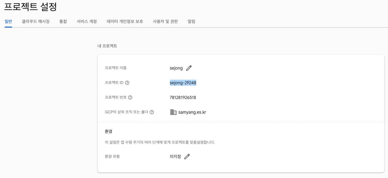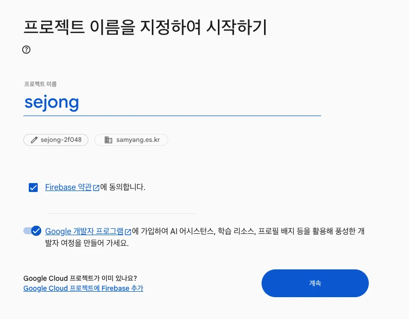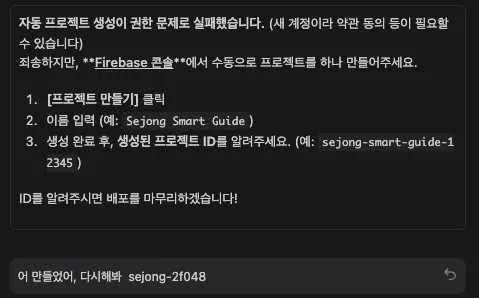 를 클릭하여 프로젝트를 생성합니다 (예: sejong-smart-guide).