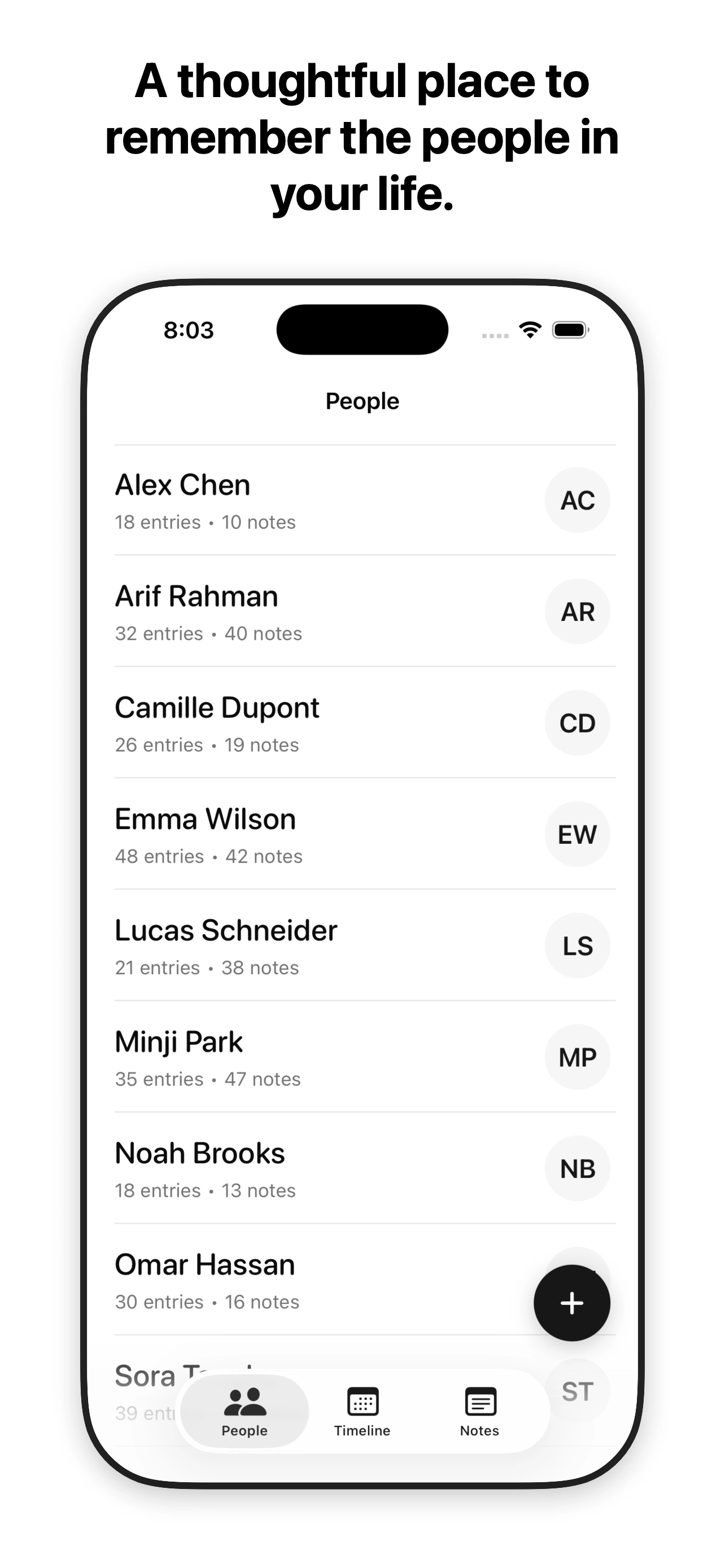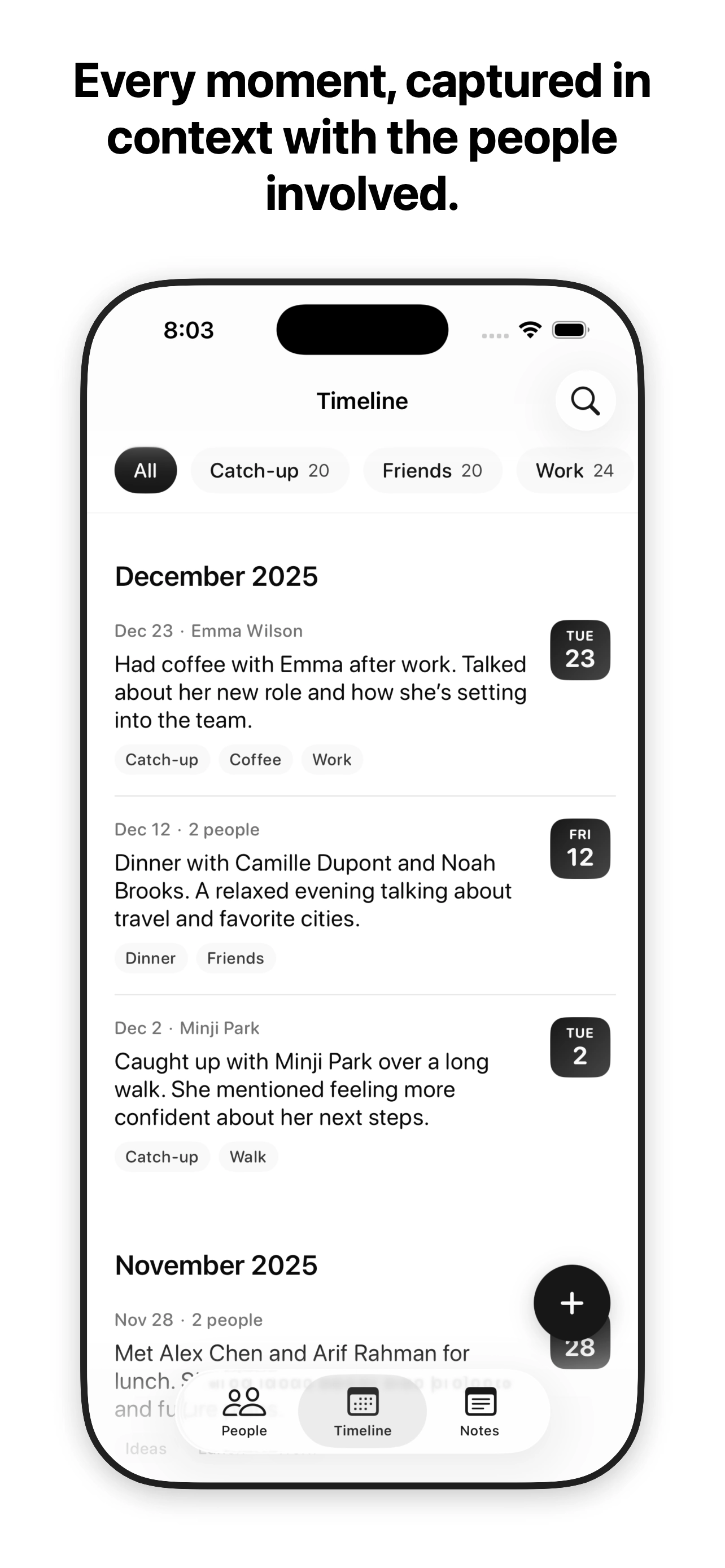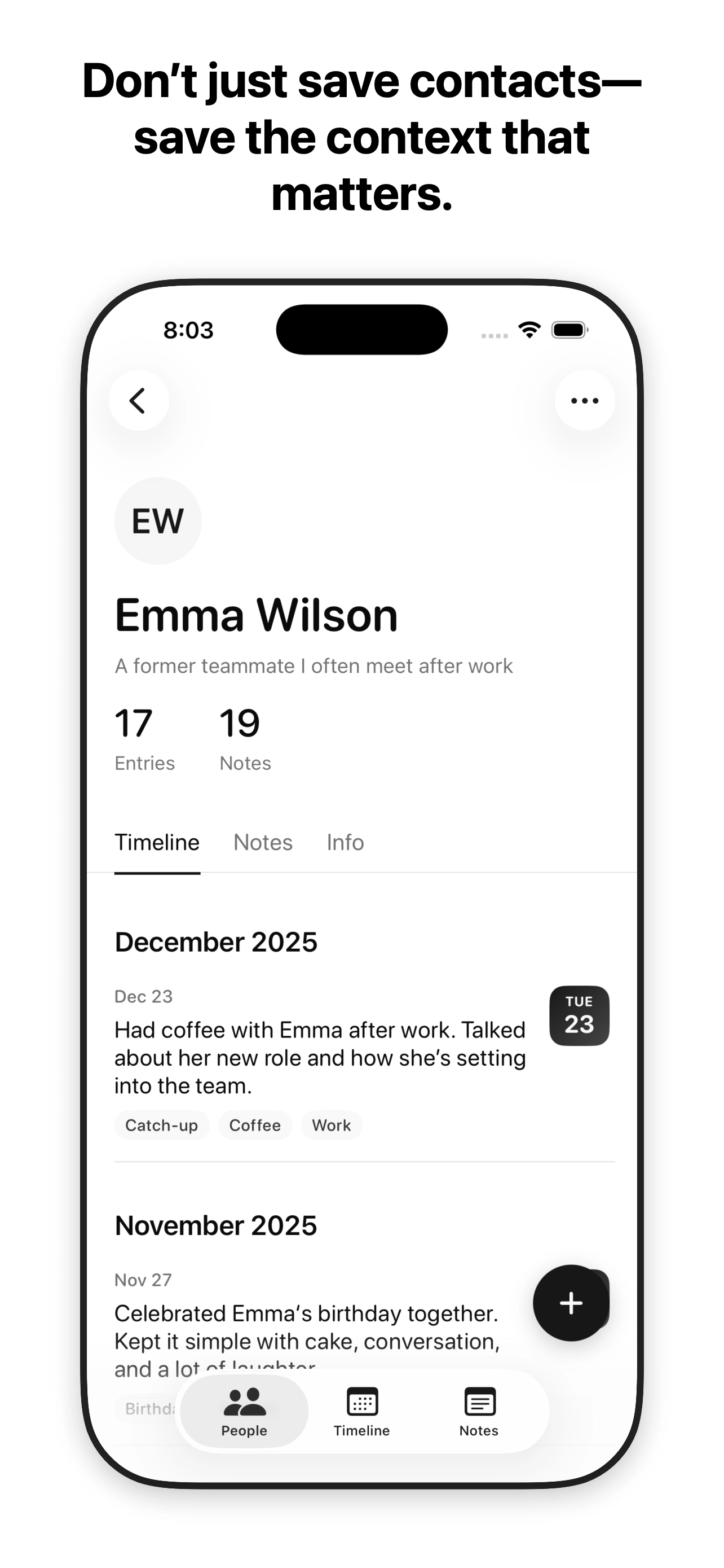 A personal space to keep notes, moments, and context around the people in your life.