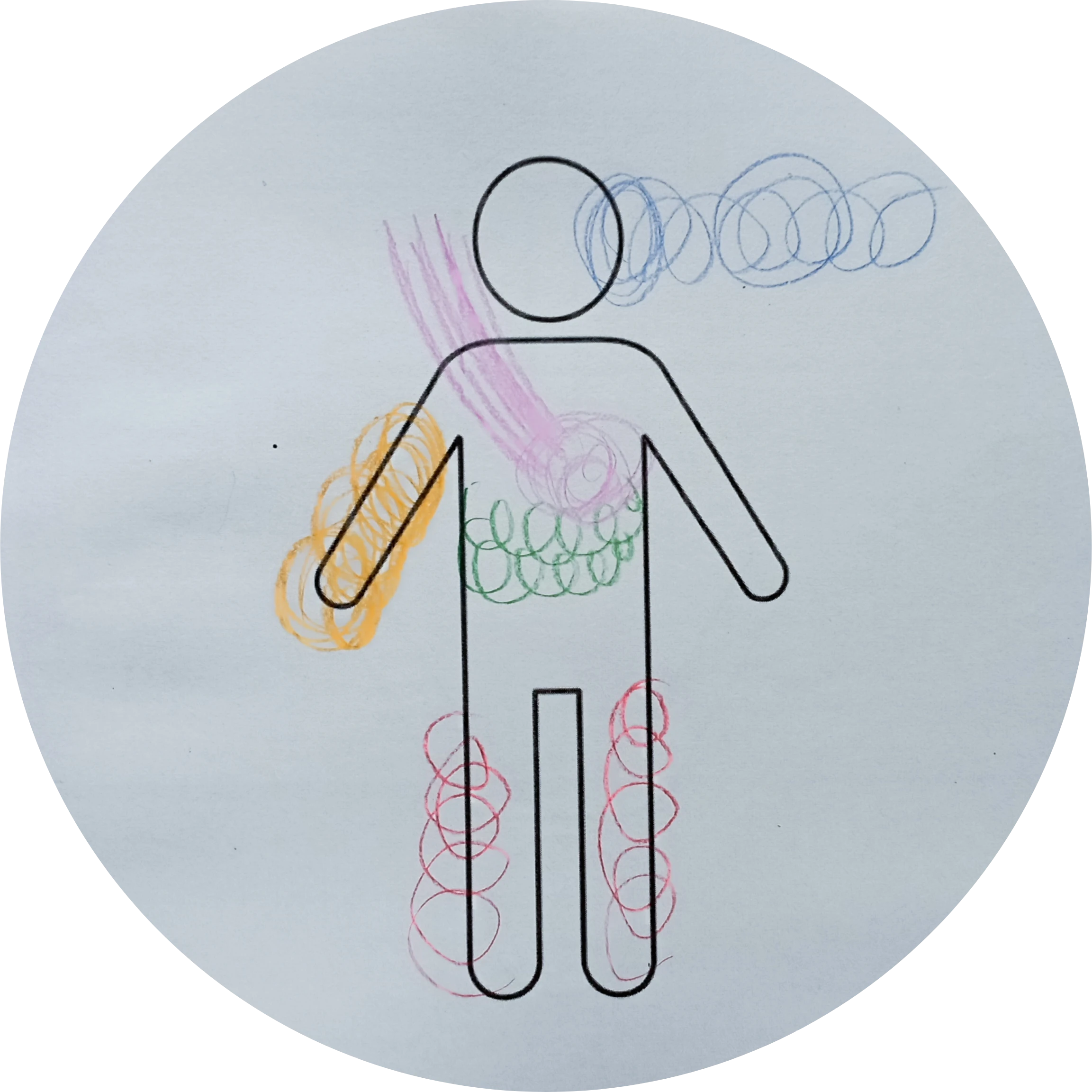 핑크색 에너지가 우측 상방에서 가슴 쪽으로 진입하는 패턴은 매우 흥미롭습니다. 가슴(심성/품성)에 닿는 이 에너지는, 심성이 현재 다정다감함, 높은 공감능력, 자애로움과 같은 따뜻한 감정으로 물들고 있음을 나타냅니다. 특히 외부(우측 상방)에서 들어오는 형태는, 당신이 타인과의 관계(동성/공적인 영역과 인접)를 통해 사랑과 감정적 충족을 적극적으로 받아들이고 있음을 의미합니다. 당신의 따뜻한 마음을 잃지 않되, 자신의 감정적 경계를 명확히 설정하는 지혜가 필요합니다.