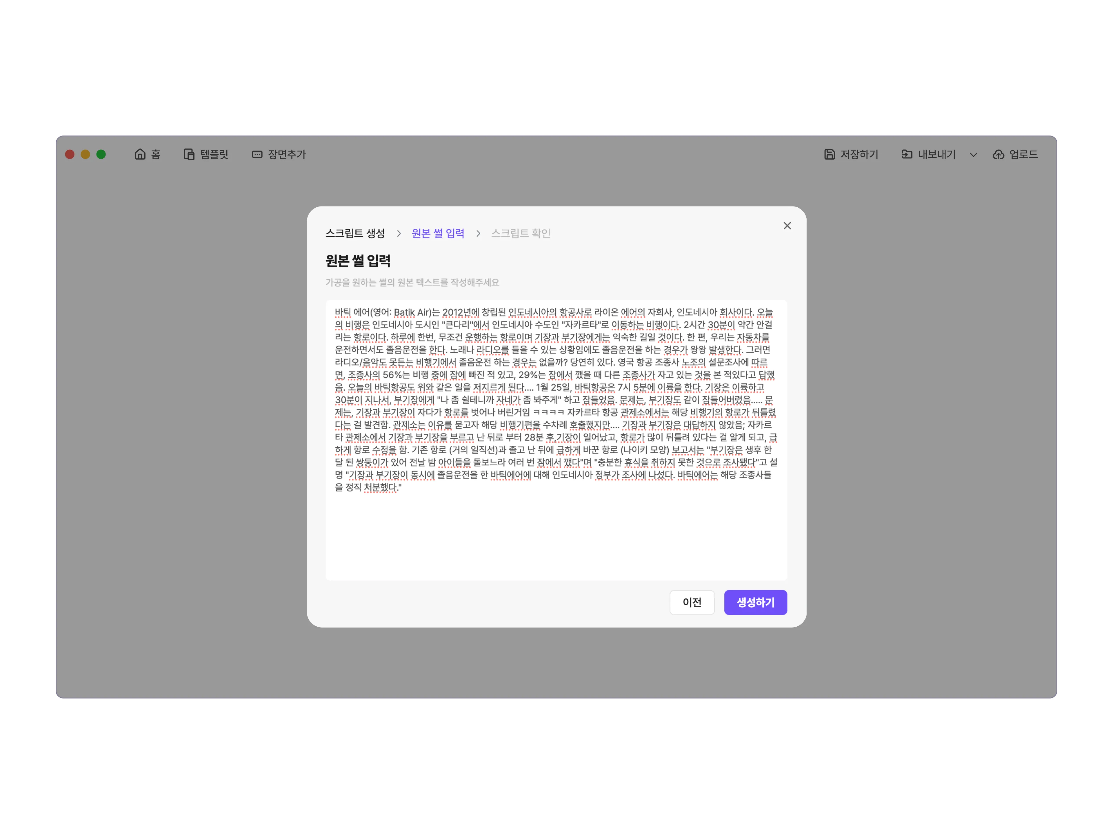 원본 썰 기반 스크립트 생성하기
