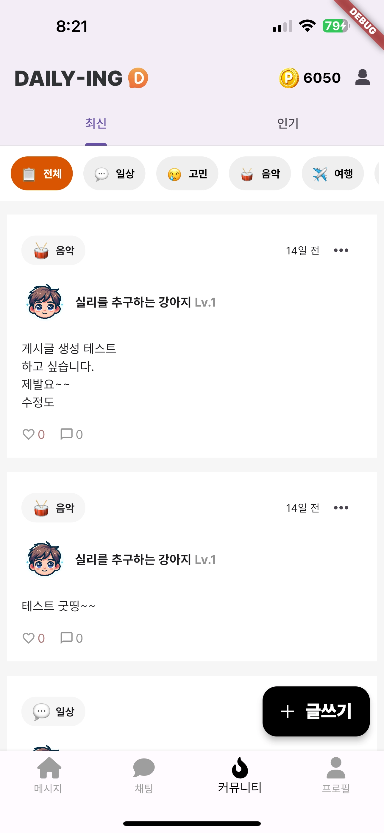 커뮤니티에 오늘 일상을 다양한 카테고리로 공유해보세요